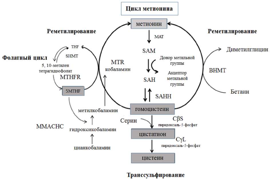 -синтазы. Повышение уровня tHcy предполагает нарушение одного из компонентов этой реакции.