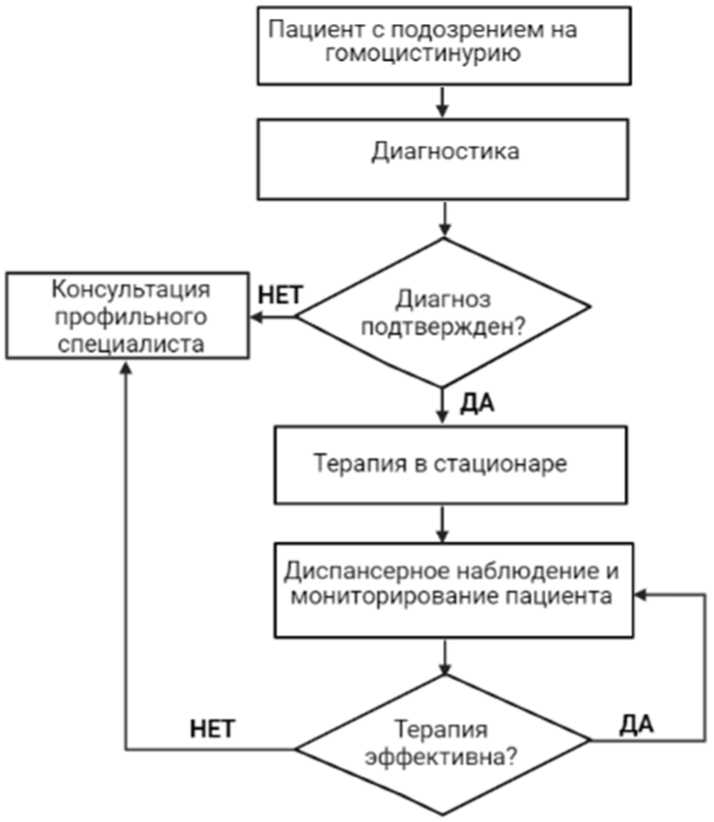 Необходим мультидисциплинарный подход к наблюдению и лечению пациентов с гомоцистинурией специалистами разных профилей с целью обеспечения комплексной терапии и своевременной ее коррекции при необходимости. Для пациентов с гомоцистинурией необходимы регулярные обследования, которые назначает врач.
