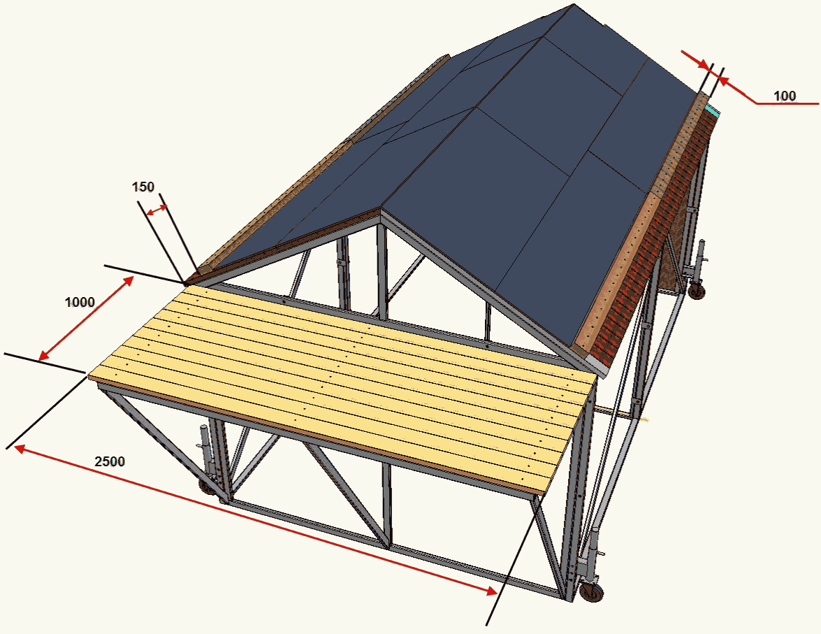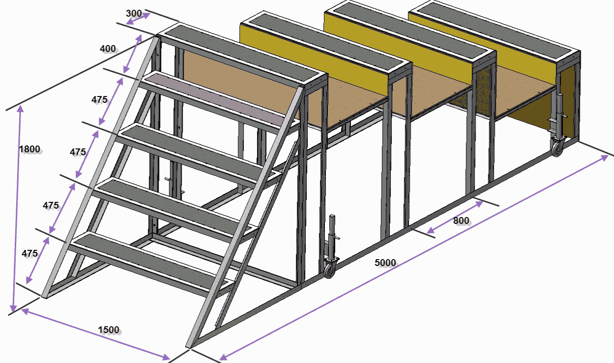 4 этап - преодолеть домик при помощи приставленной к нему лестницы и вместе с пятым участником взять носилки с манекеном и финишировать.