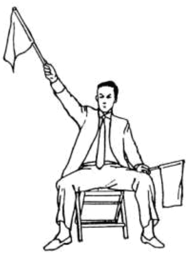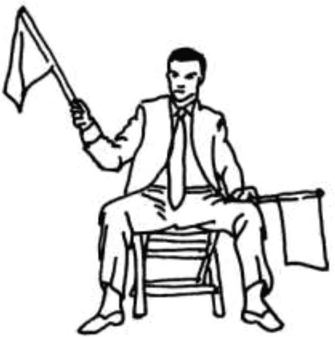 2.4.3. Арбитр находится сзади слева или справа от рефери прямо за зоной безопасности. Арбитр имеет красный флаг (или знак) и свисток.