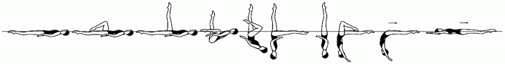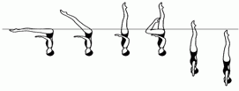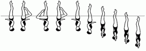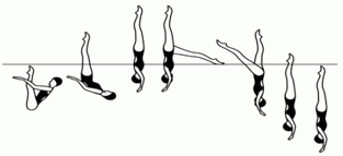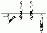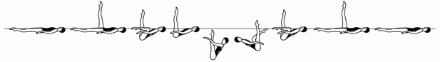 Акробатическое движение заканчивается с полным погружением под воду всех спортсменов, включая того, которого поднимали. Для нескольких акробатических движений: