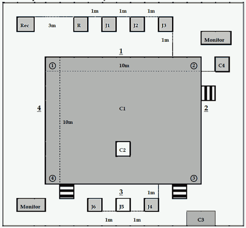 ПРИГОТОВИТЬСЯ - JUNBI - ВЫСТАВЛЯЯ РУКУ МЕЖДУ СПОРТСМЕНАМИ.