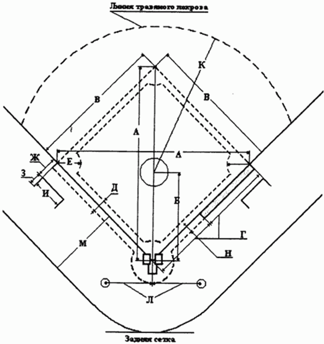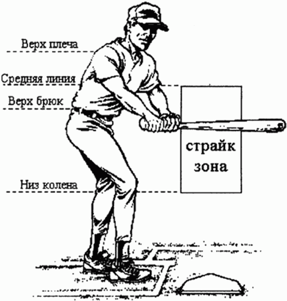 Зона бьющего (BATTER'S BOX) - место, размеченное на поле, в пределах которой должен находится бьющий, выполняя действия с битой.
