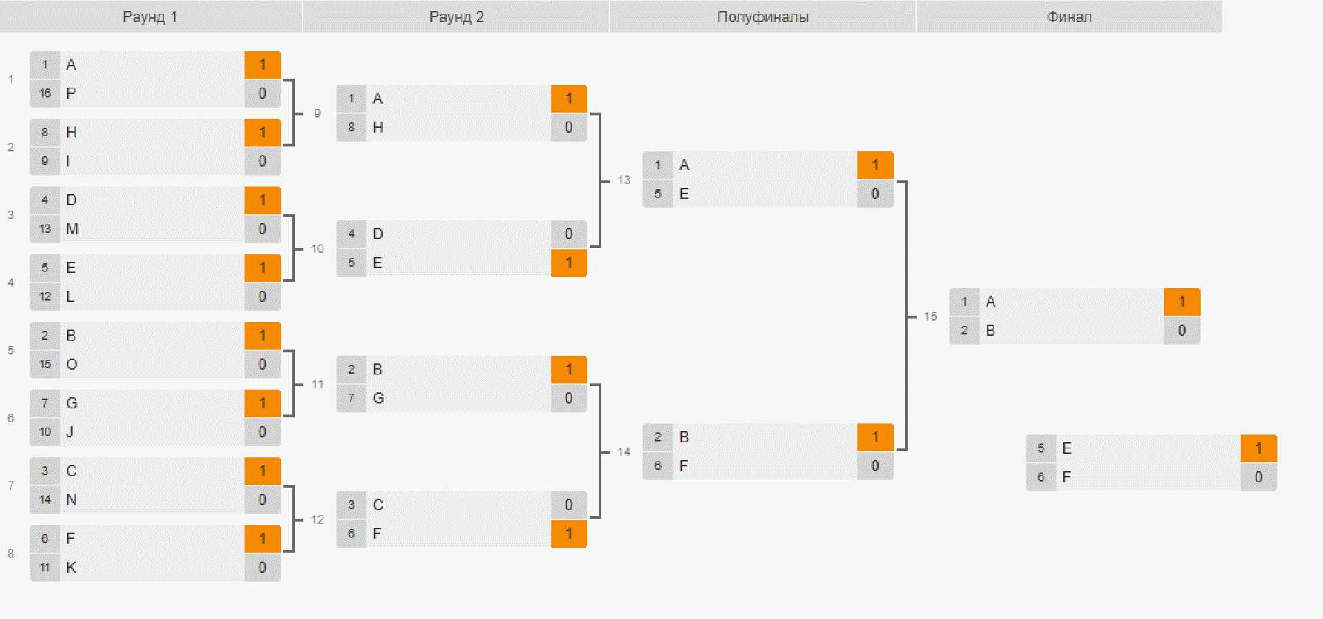 1.4.4. Олимпийская система с выбыванием - система, при которой участник соревнований, проигравший встречу, выбывает из дальнейшего участия в данных соревнованиях.