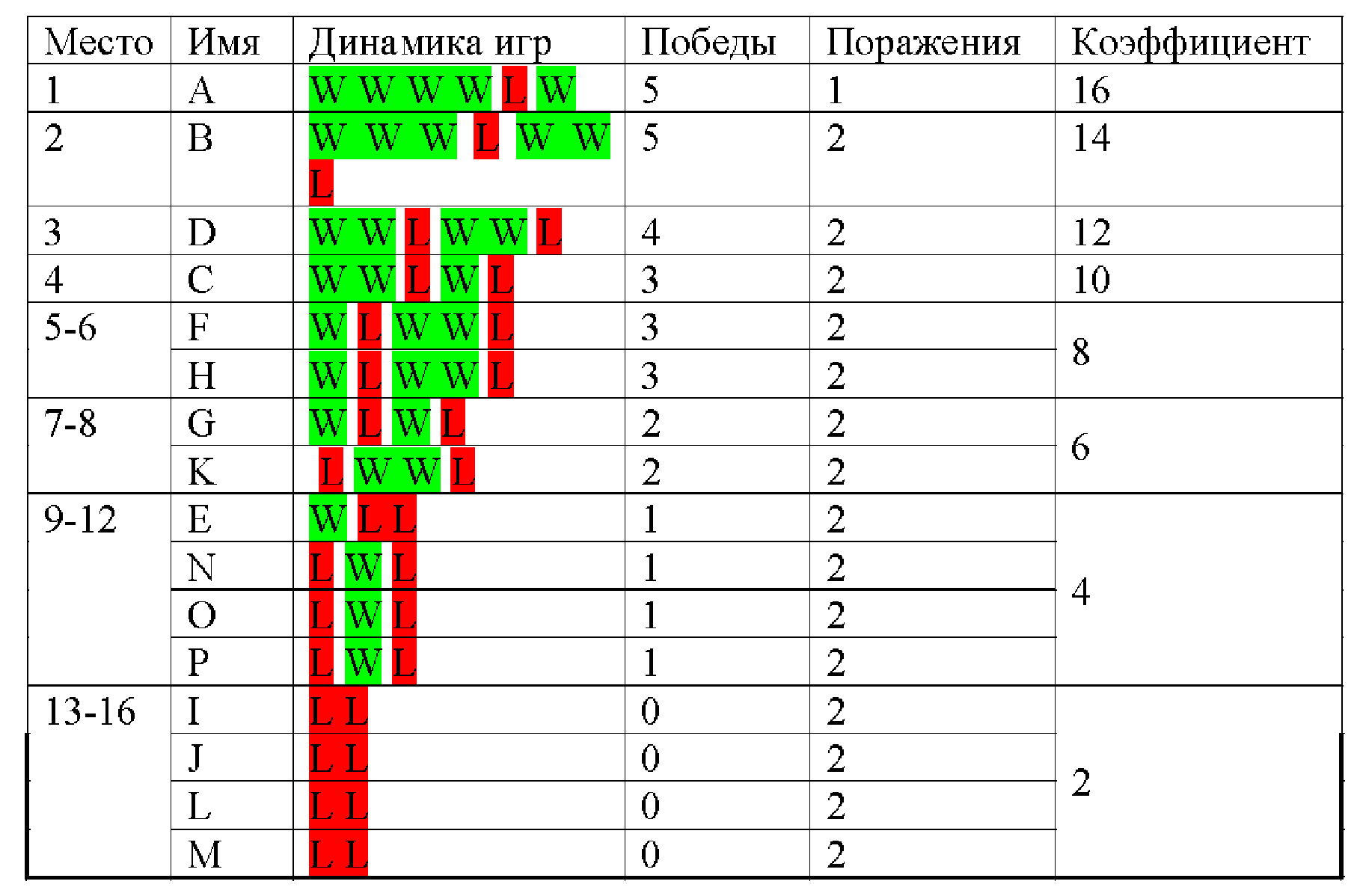 1.4.7. Смешанная система - система, при которой на разных этапах применяются вышеуказанные системы, например, круговая система - с разбиением участников на группы, затем олимпийская система.