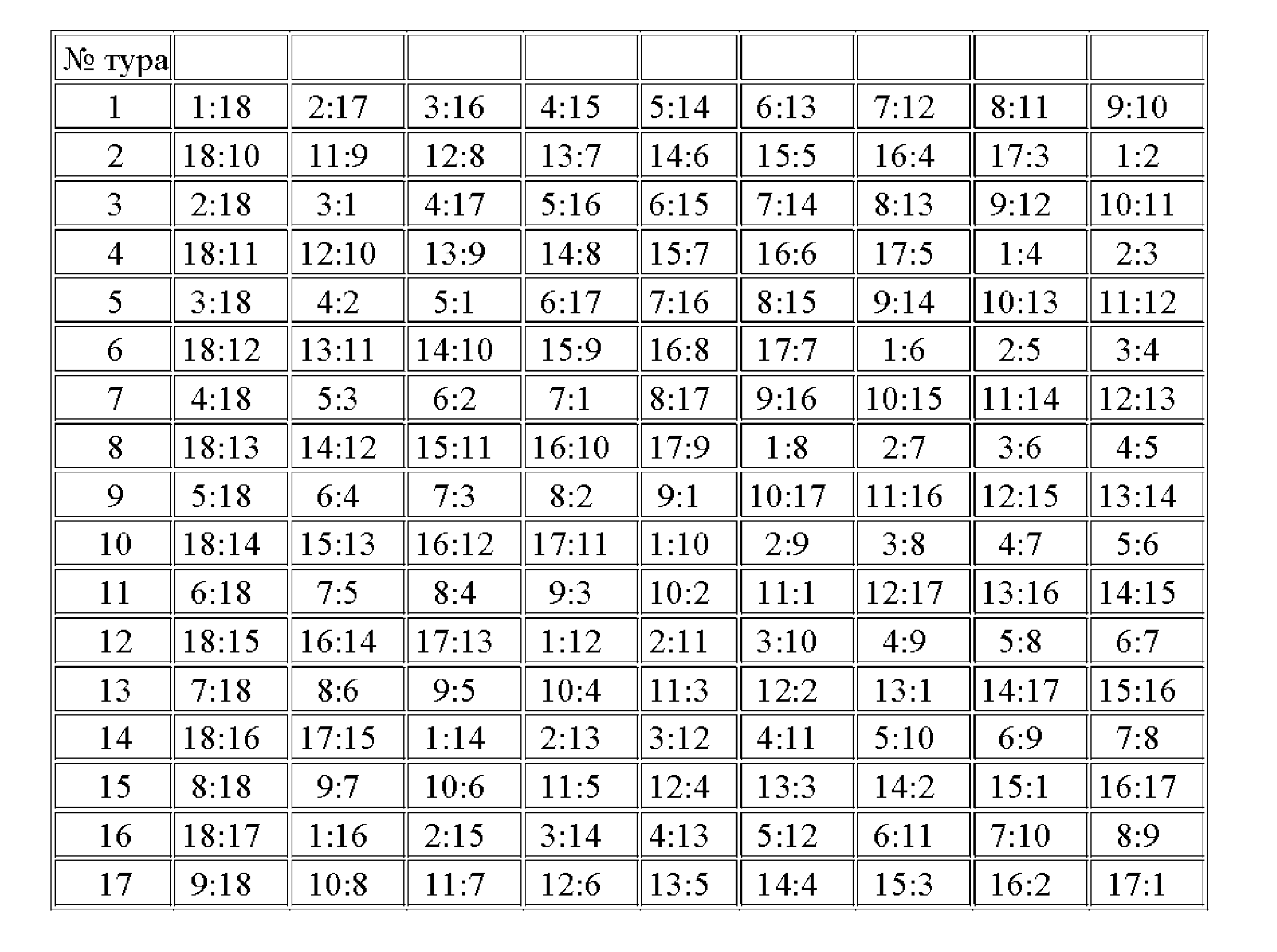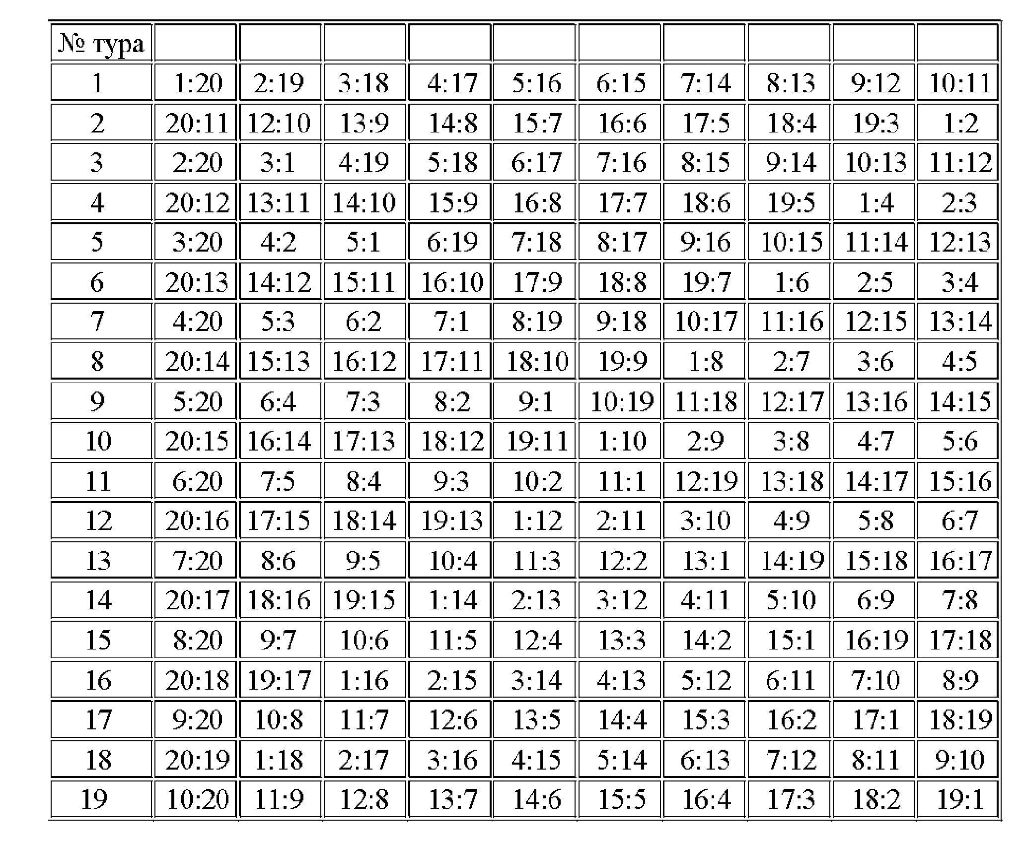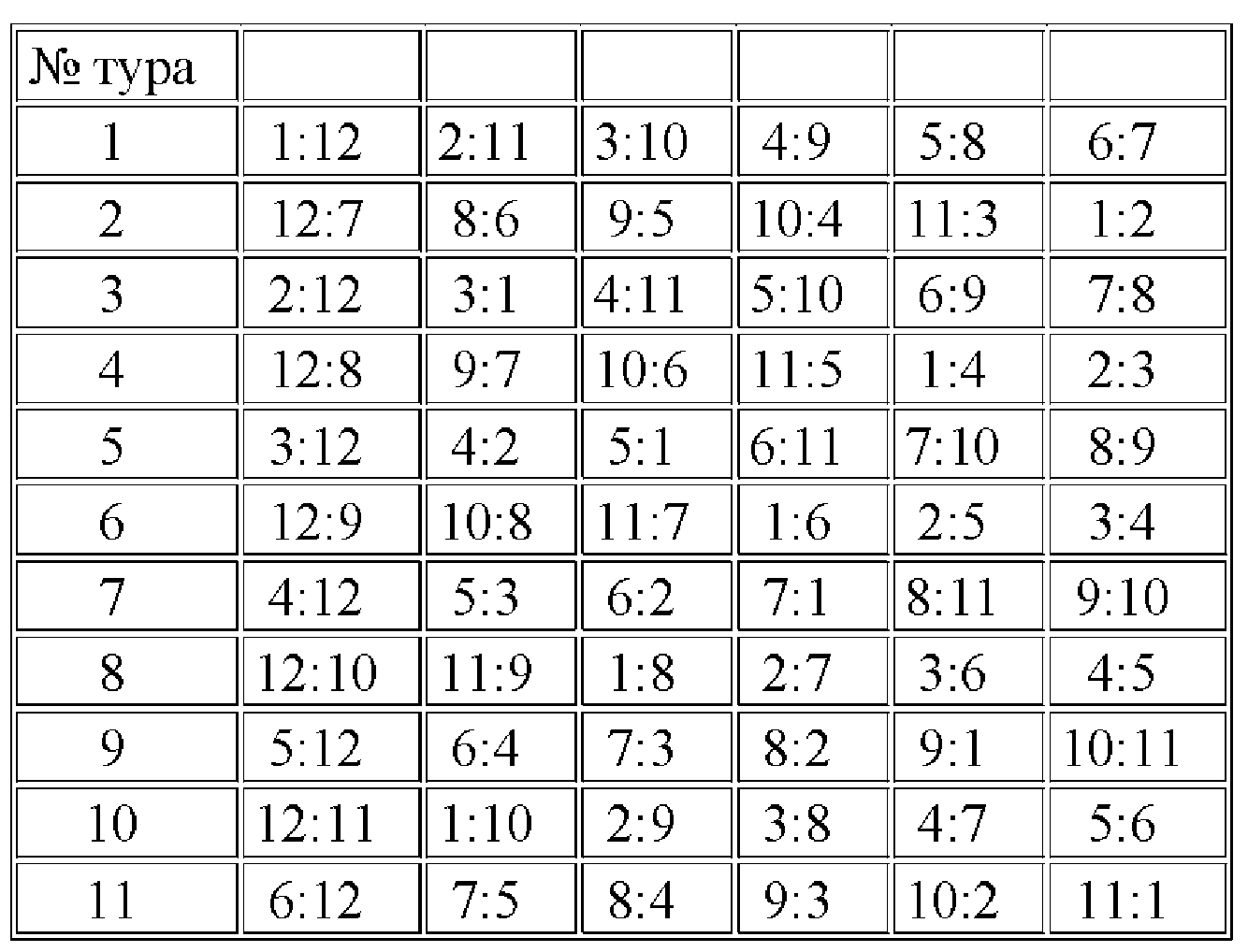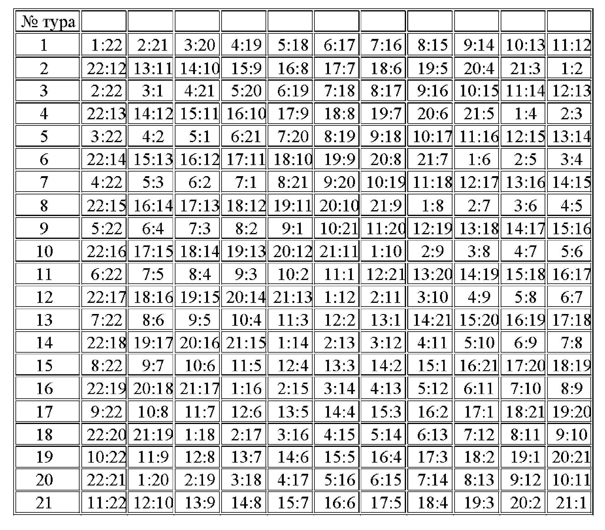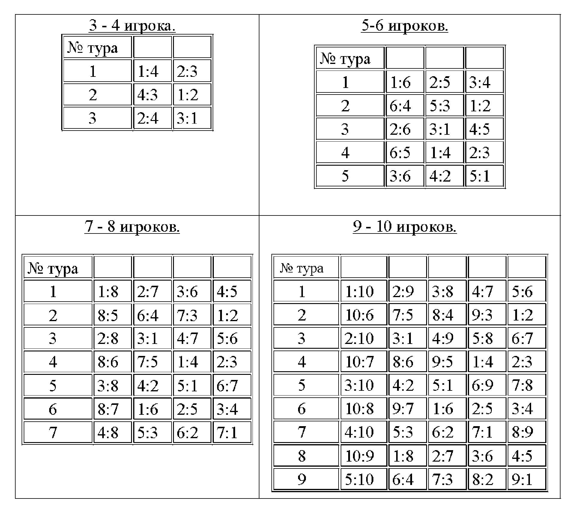7.1.1 Порядок определения очередности матчей в соревнованиях по круговой системе: