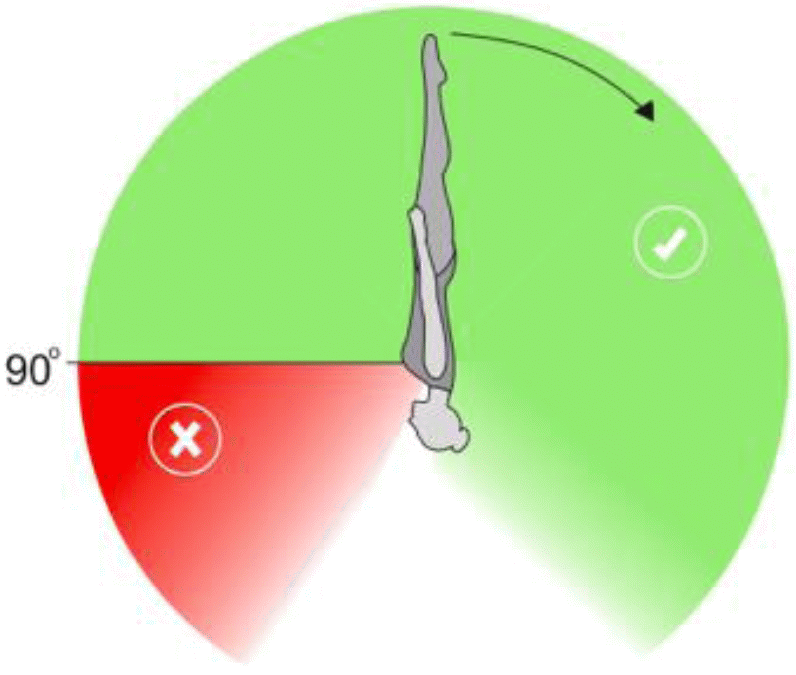 1.24. Переворот - акробатический элемент, при исполнении которого партнер переворачивает партнершу за корпус вокруг ее фронтальной или сагиттальной оси не менее чем на 300 градусов. По окончании переворота бедра партнерши должны быть ниже горизонтали, а плечи выше горизонтали.