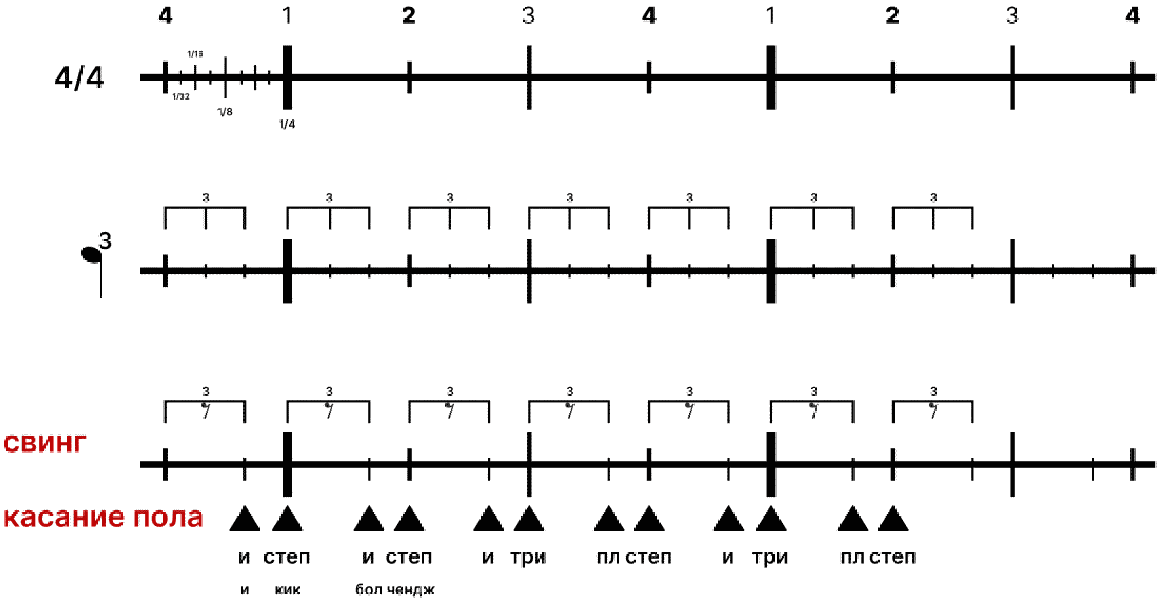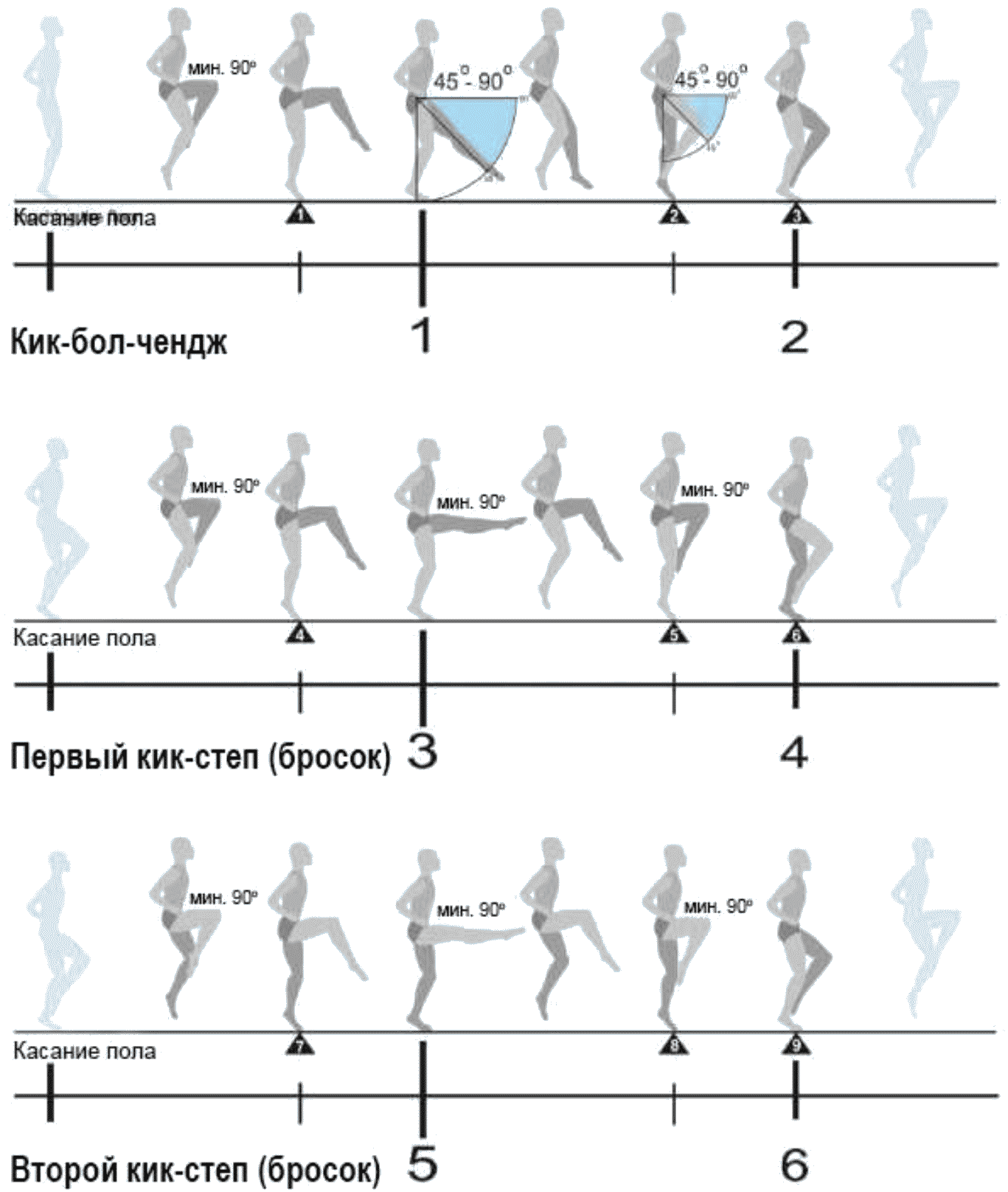 1.11. Полный основной ход - исполнение кик-бол-чендж + кик-степ + кик-степ - только в этом порядке.