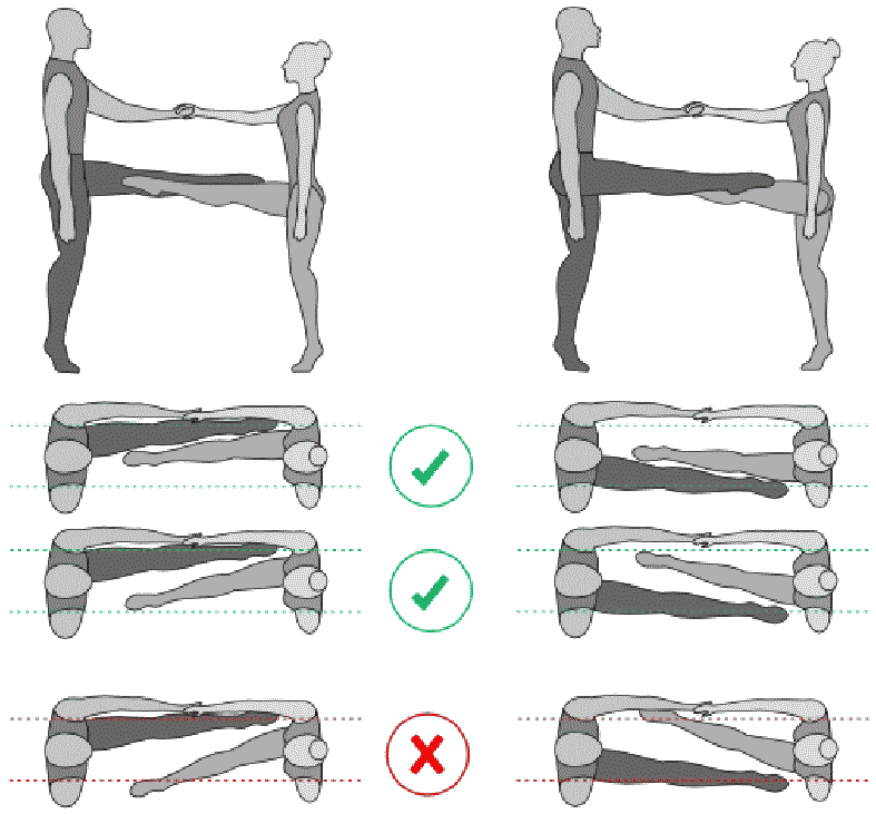 1.32. Хват - за кисти рук (как минимум одну), за руку от кисти до плечевого сустава, двумя руками с обеих сторон за корпус. Недопустим хват кистями рук за шею или за ноги при отсутствии другого хвата.