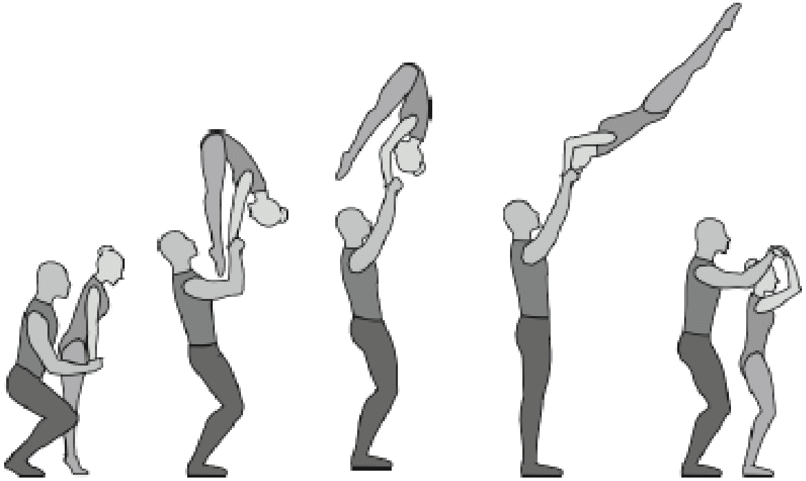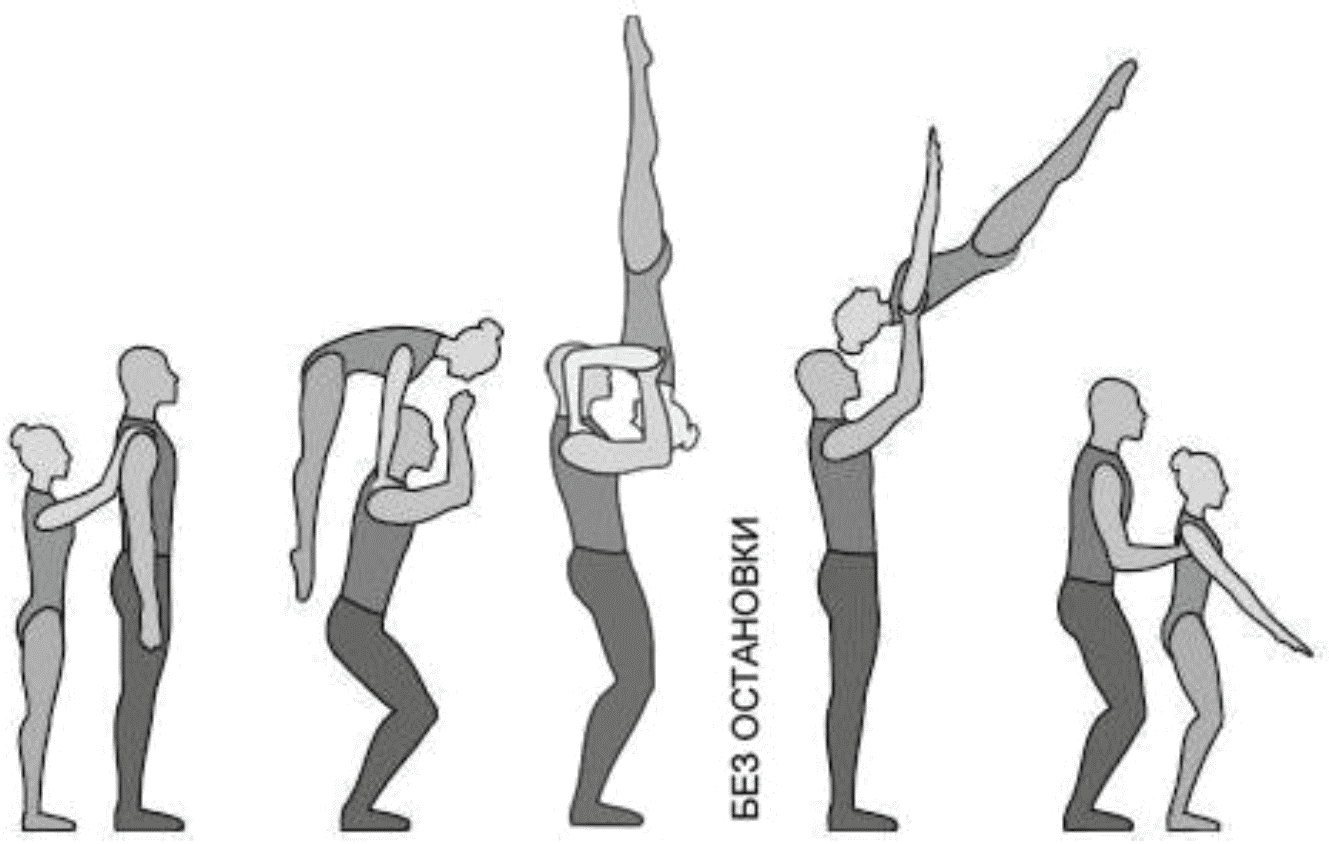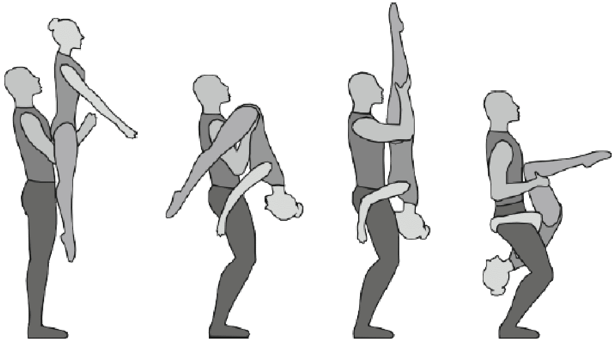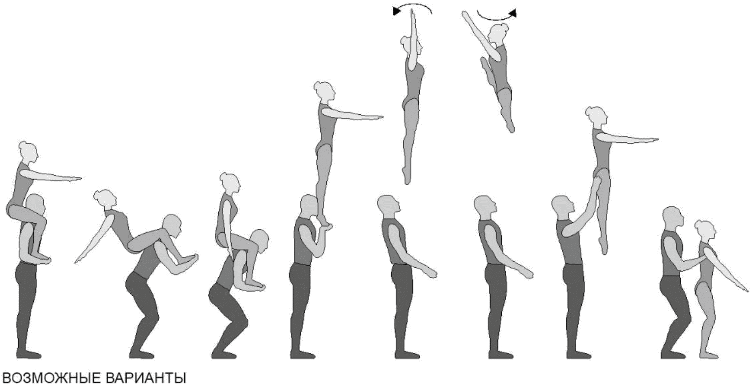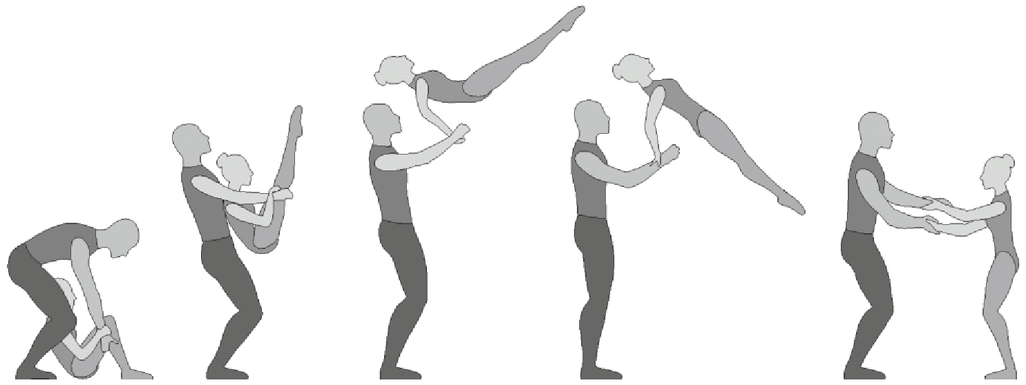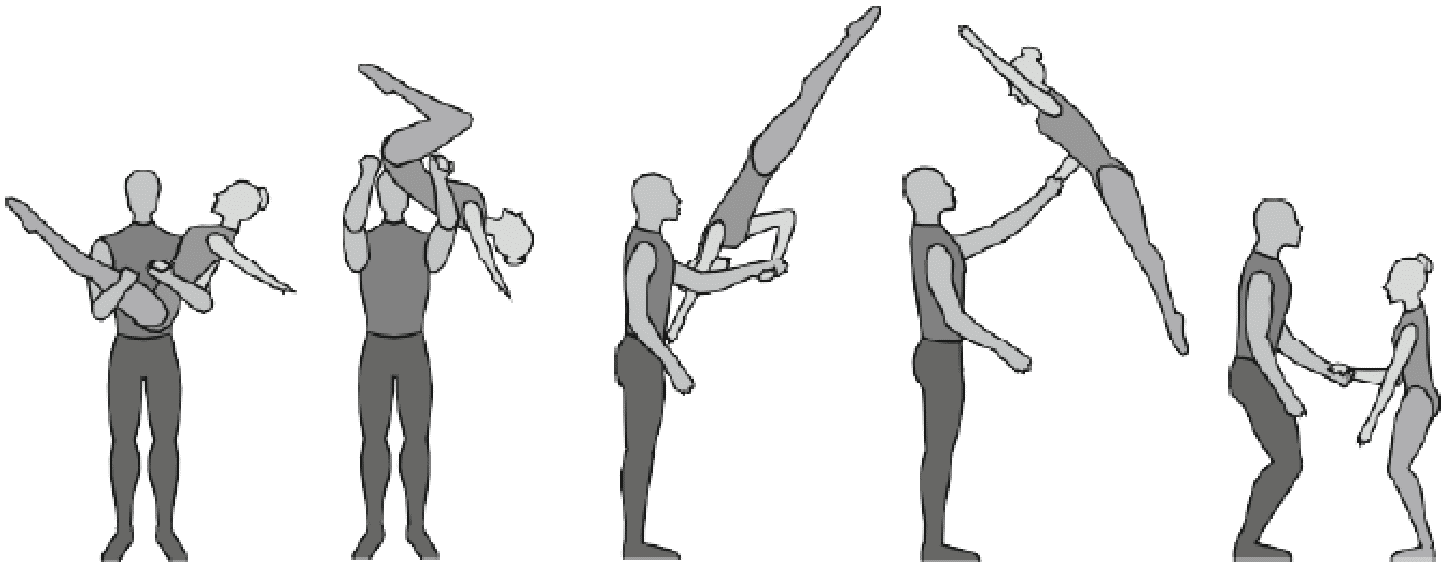 1.22.1. последовательность движений, при которой происходит отрыв от пола одного из партнеров при помощи другого партнера или партнеров;