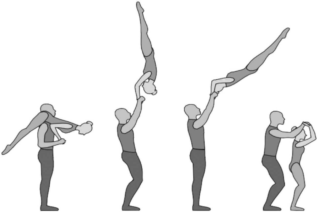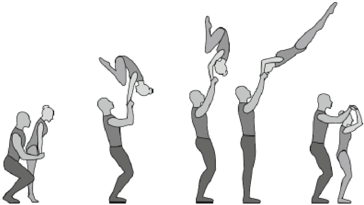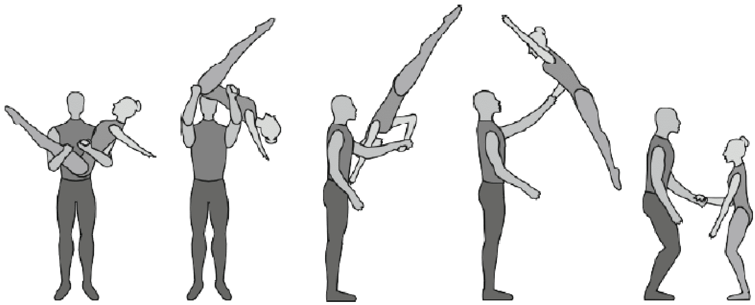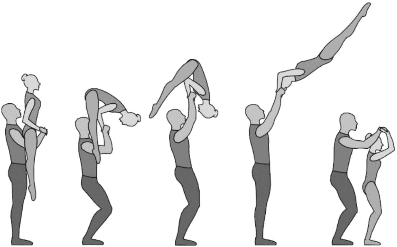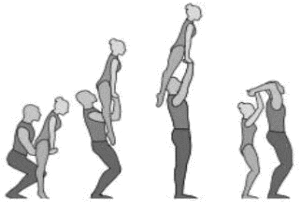 1.22.1. последовательность движений, при которой происходит отрыв от пола одного из партнеров при помощи другого партнера или партнеров;