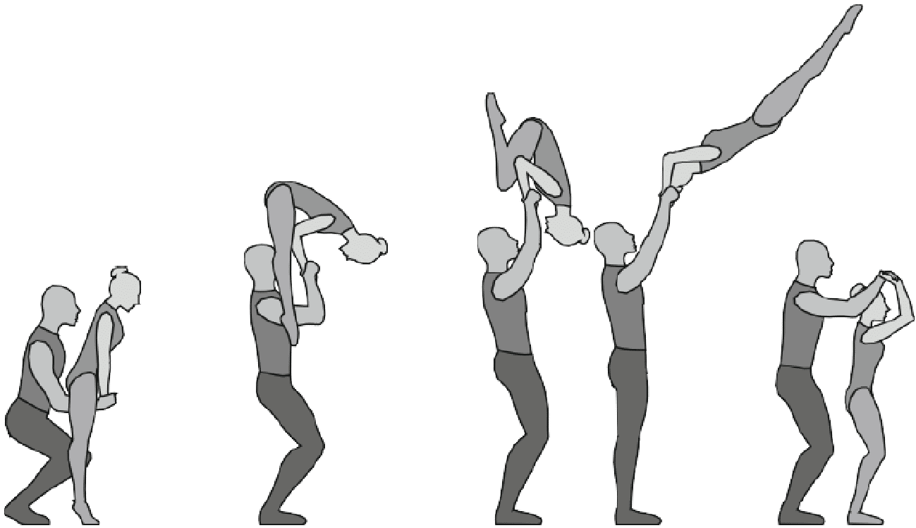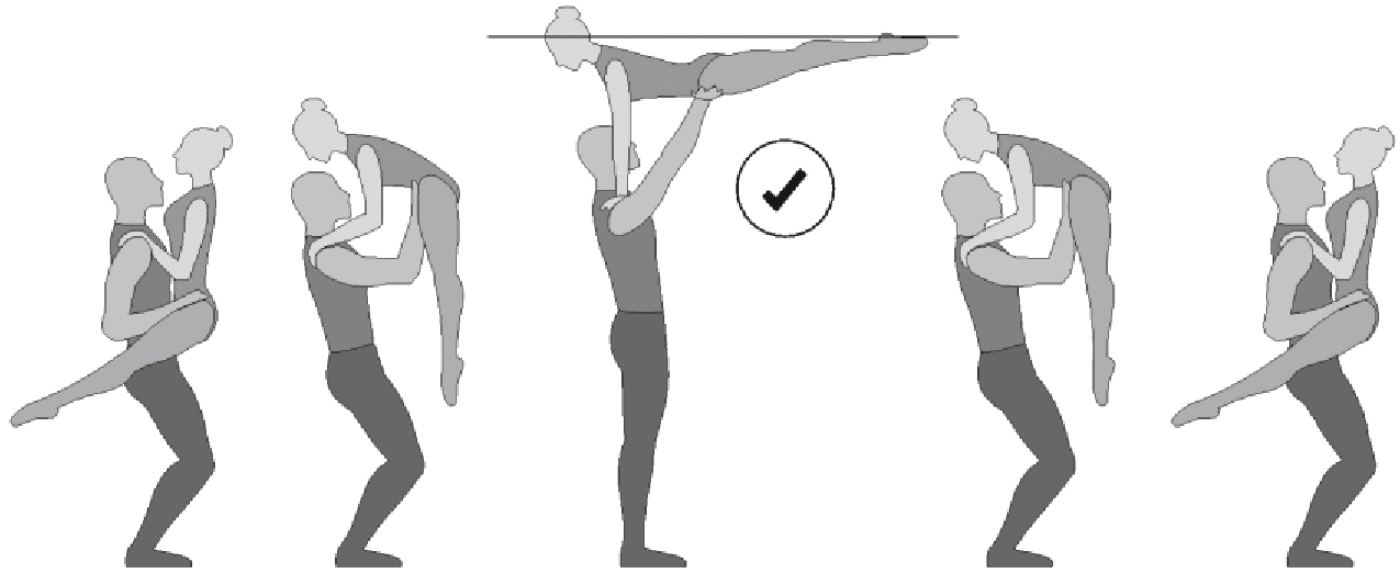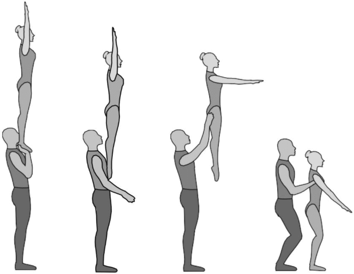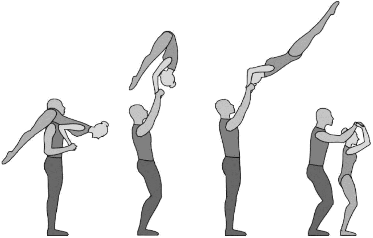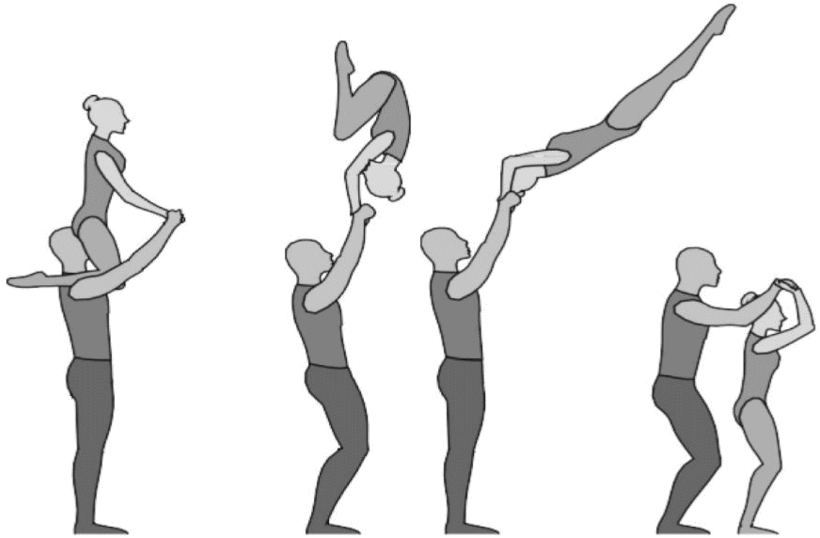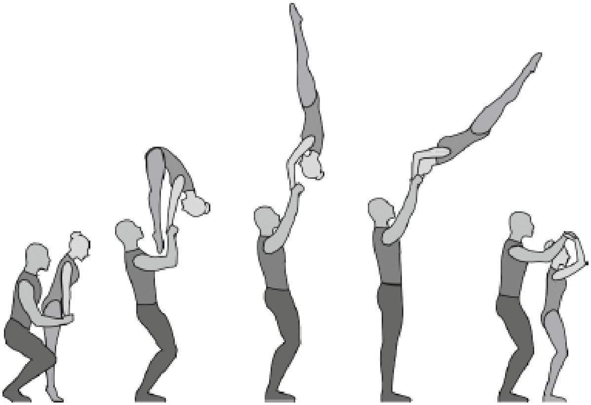 1.22.1. последовательность движений, при которой происходит отрыв от пола одного из партнеров при помощи другого партнера или партнеров;