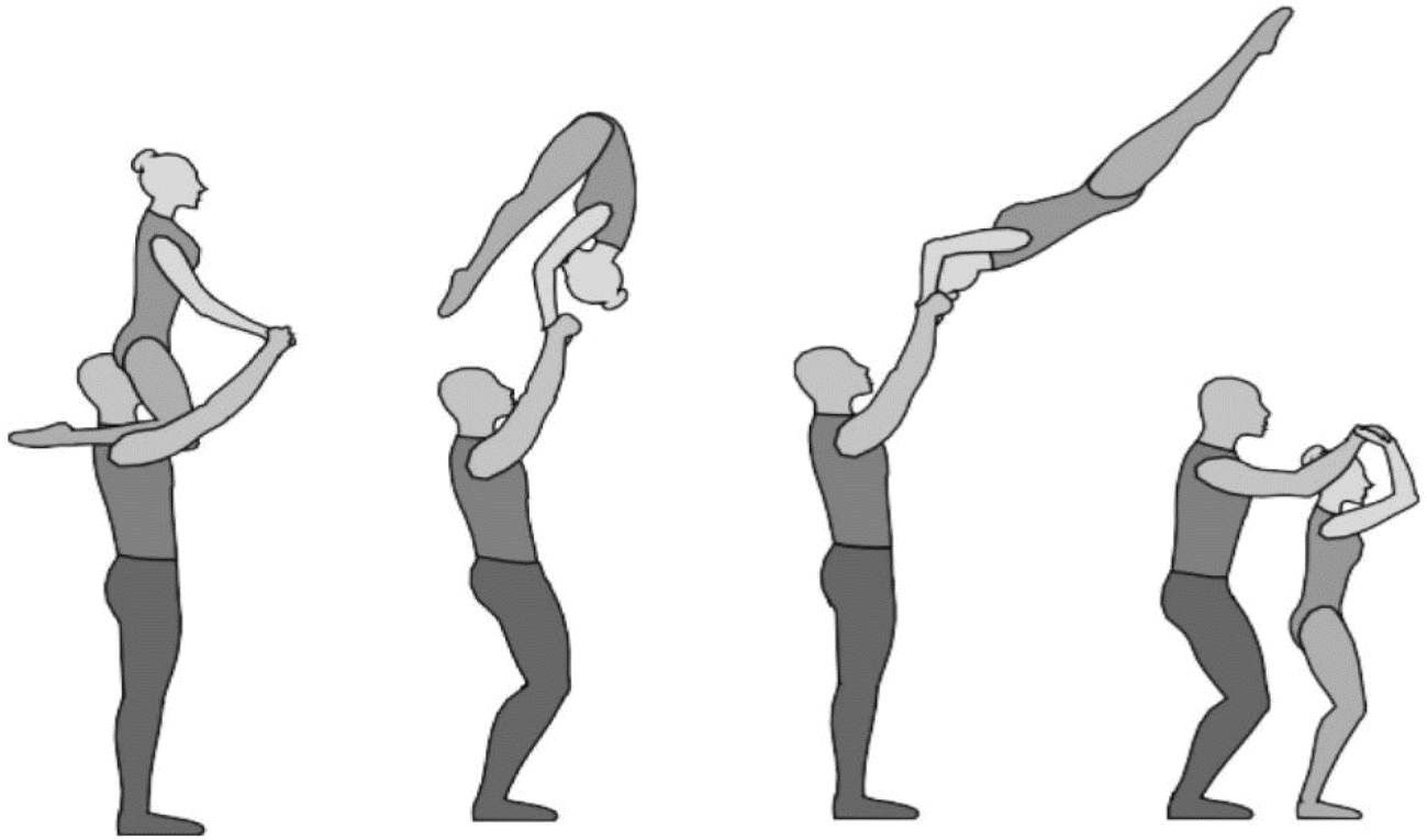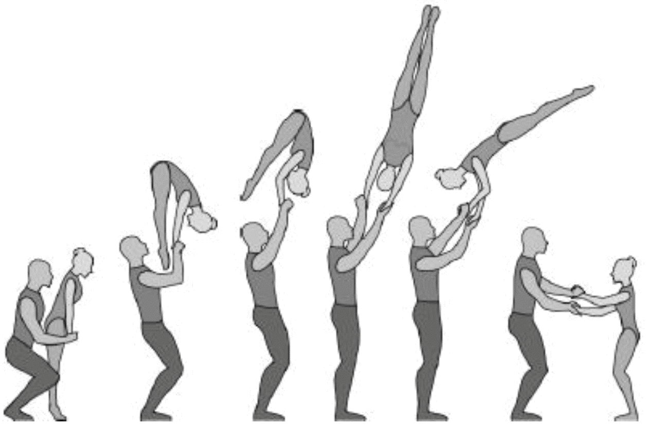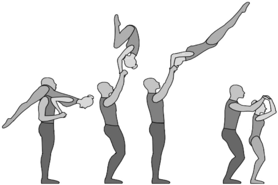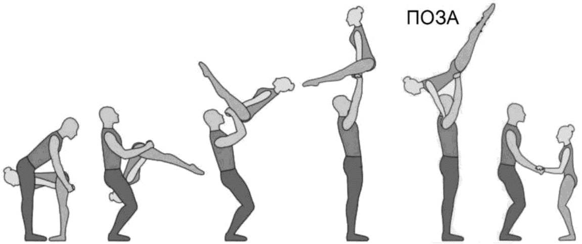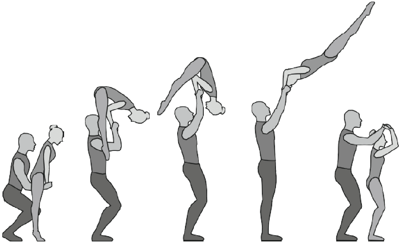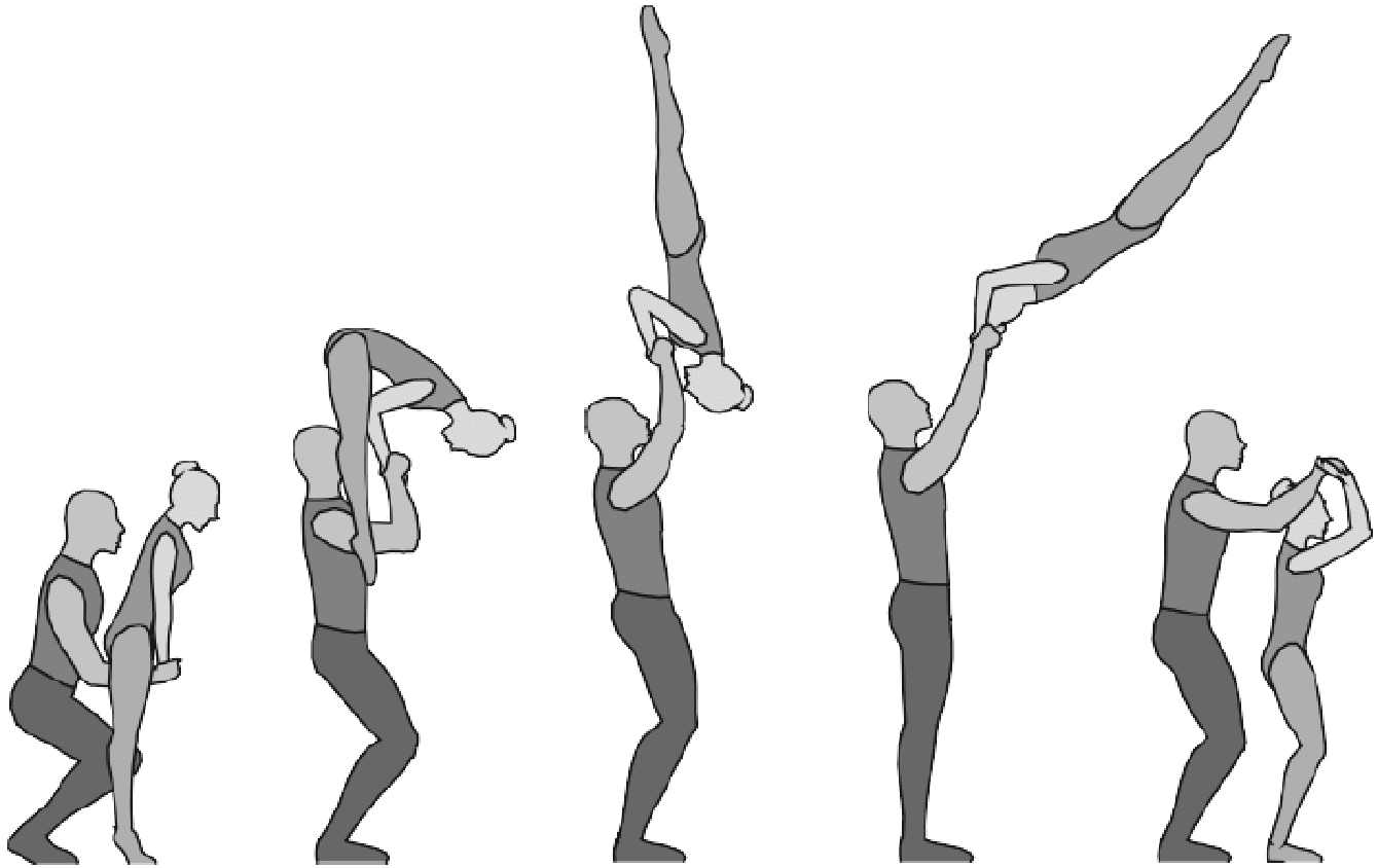 1.22.1. последовательность движений, при которой происходит отрыв от пола одного из партнеров при помощи другого партнера или партнеров;