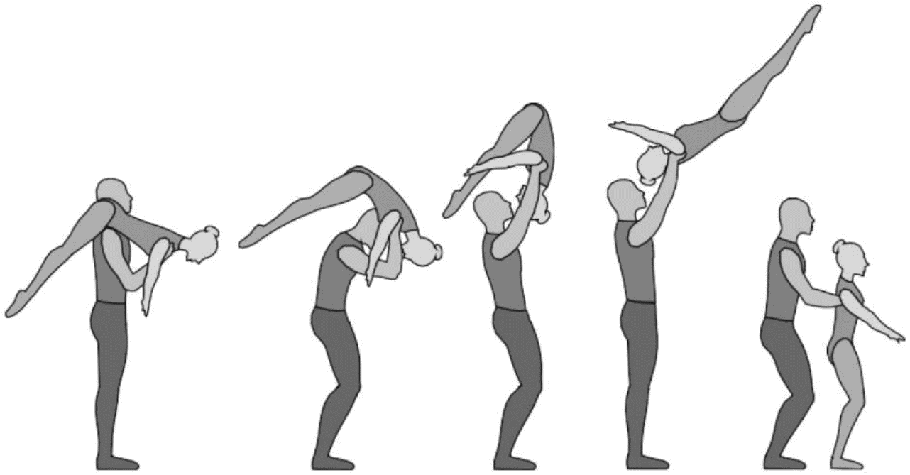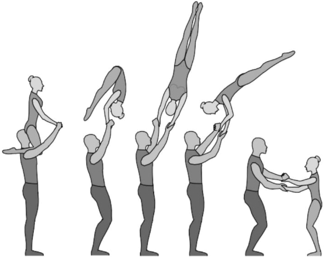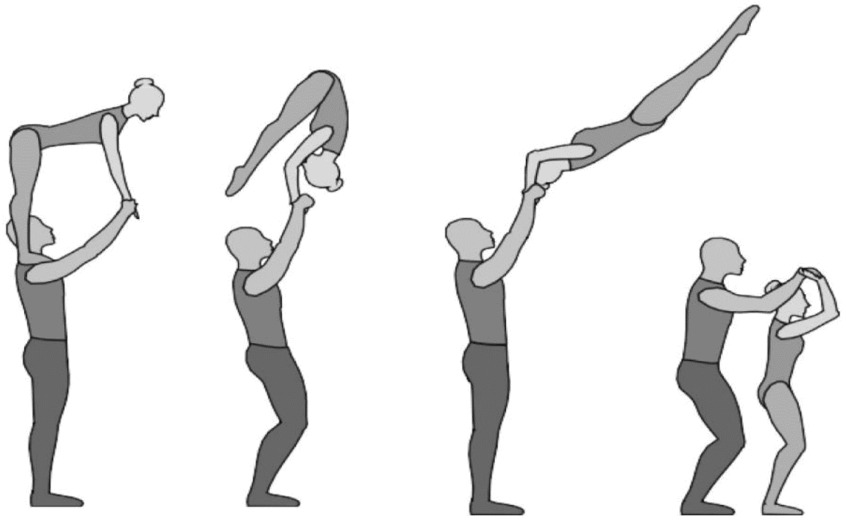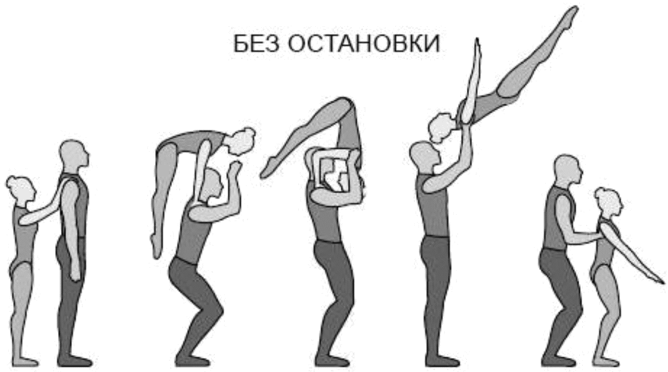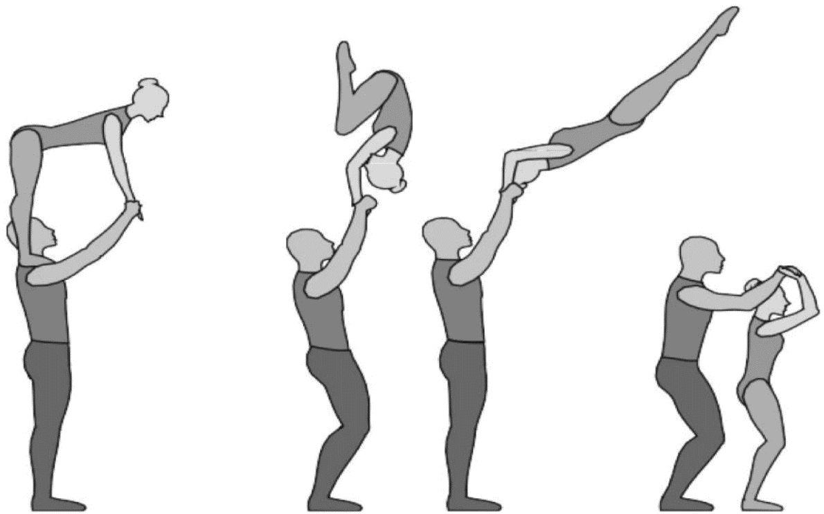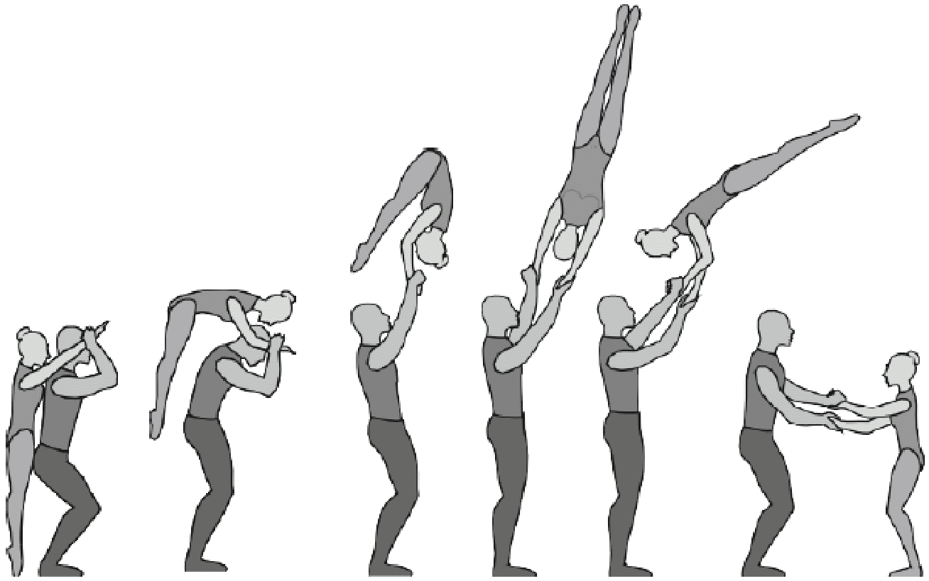 1.22.1. последовательность движений, при которой происходит отрыв от пола одного из партнеров при помощи другого партнера или партнеров;