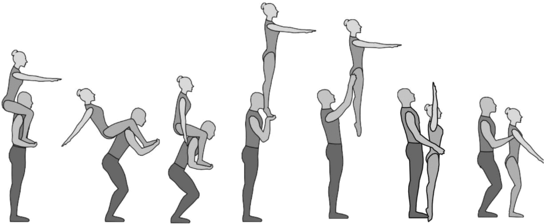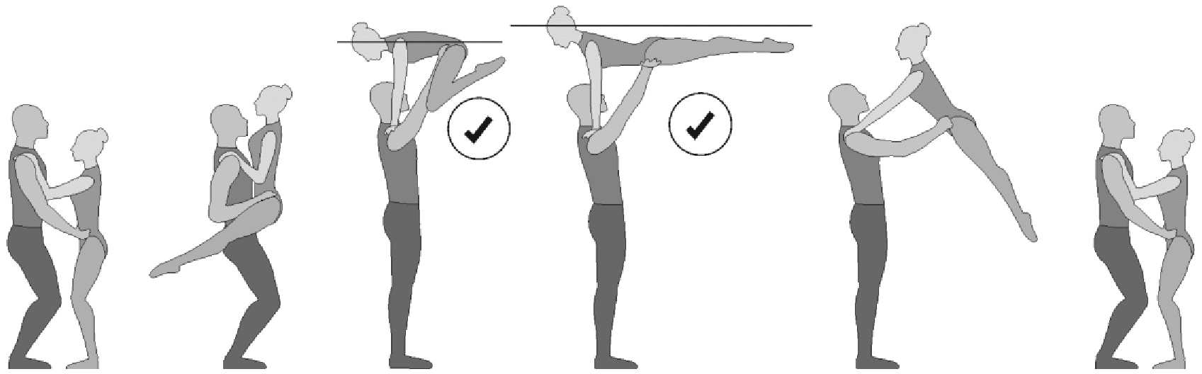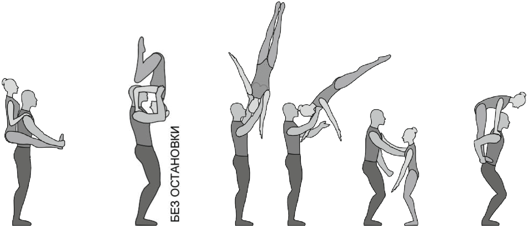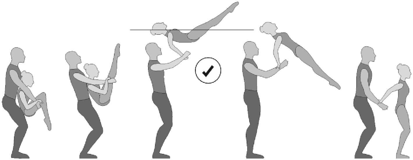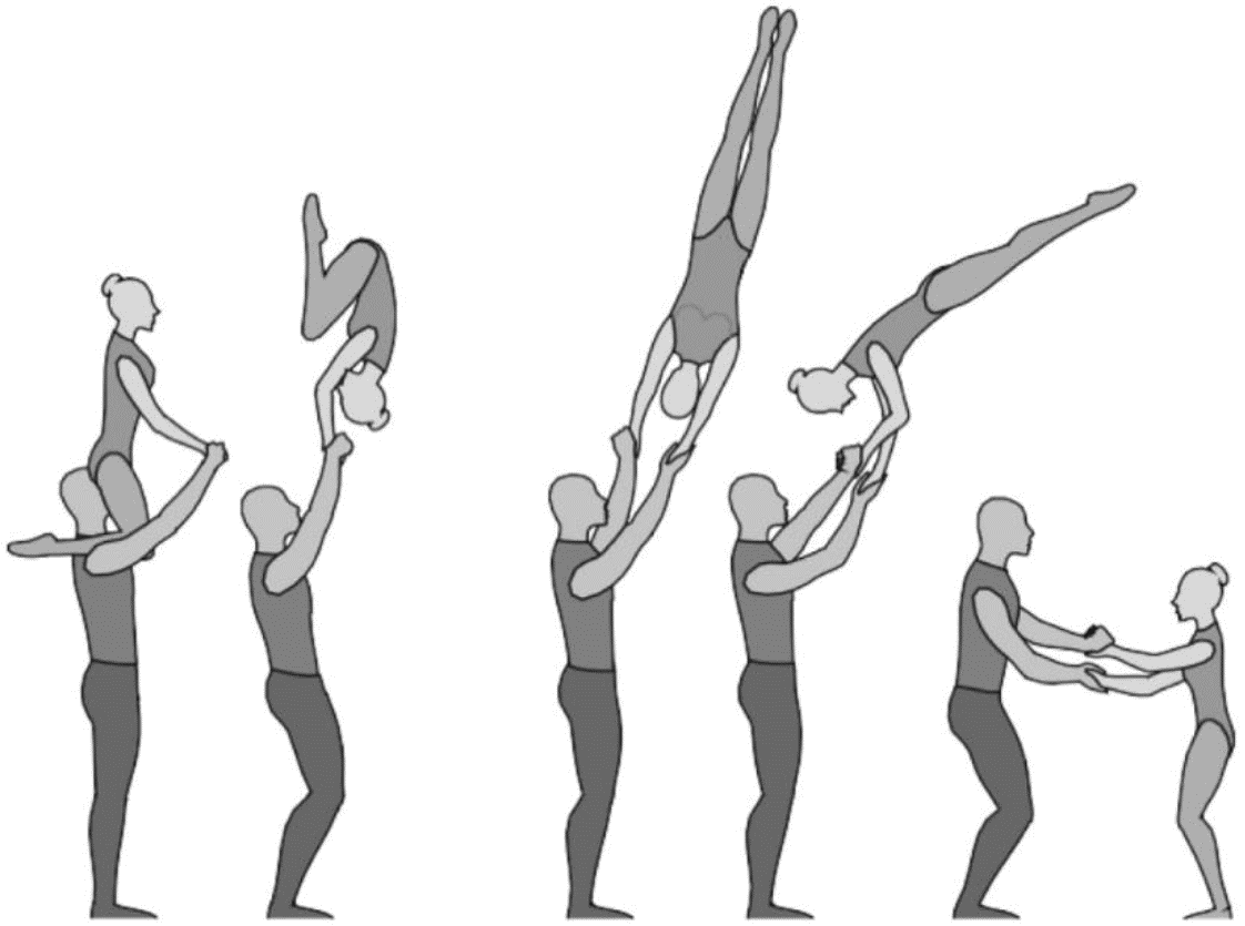 1.22.1. последовательность движений, при которой происходит отрыв от пола одного из партнеров при помощи другого партнера или партнеров;