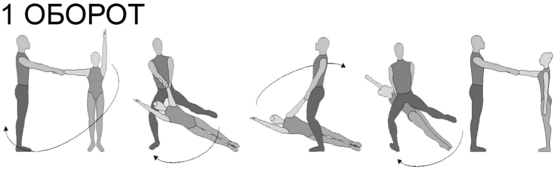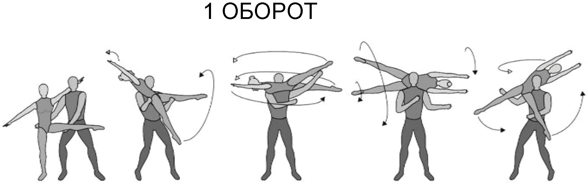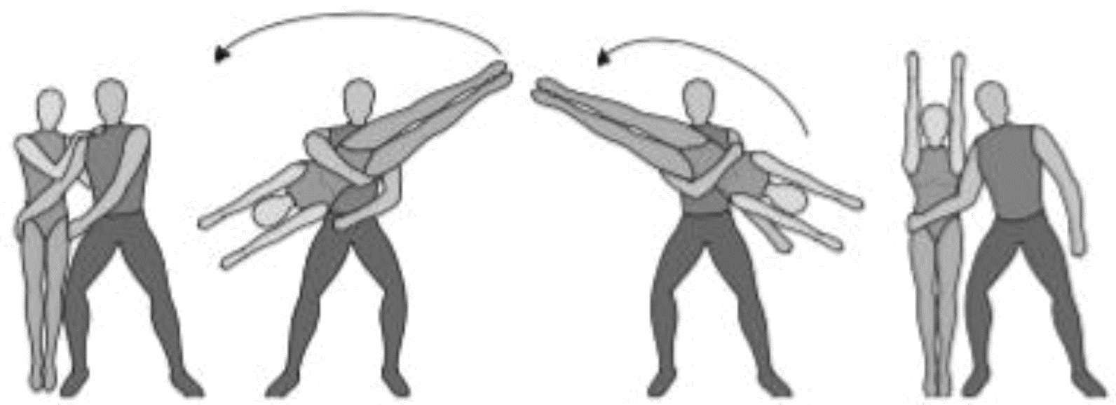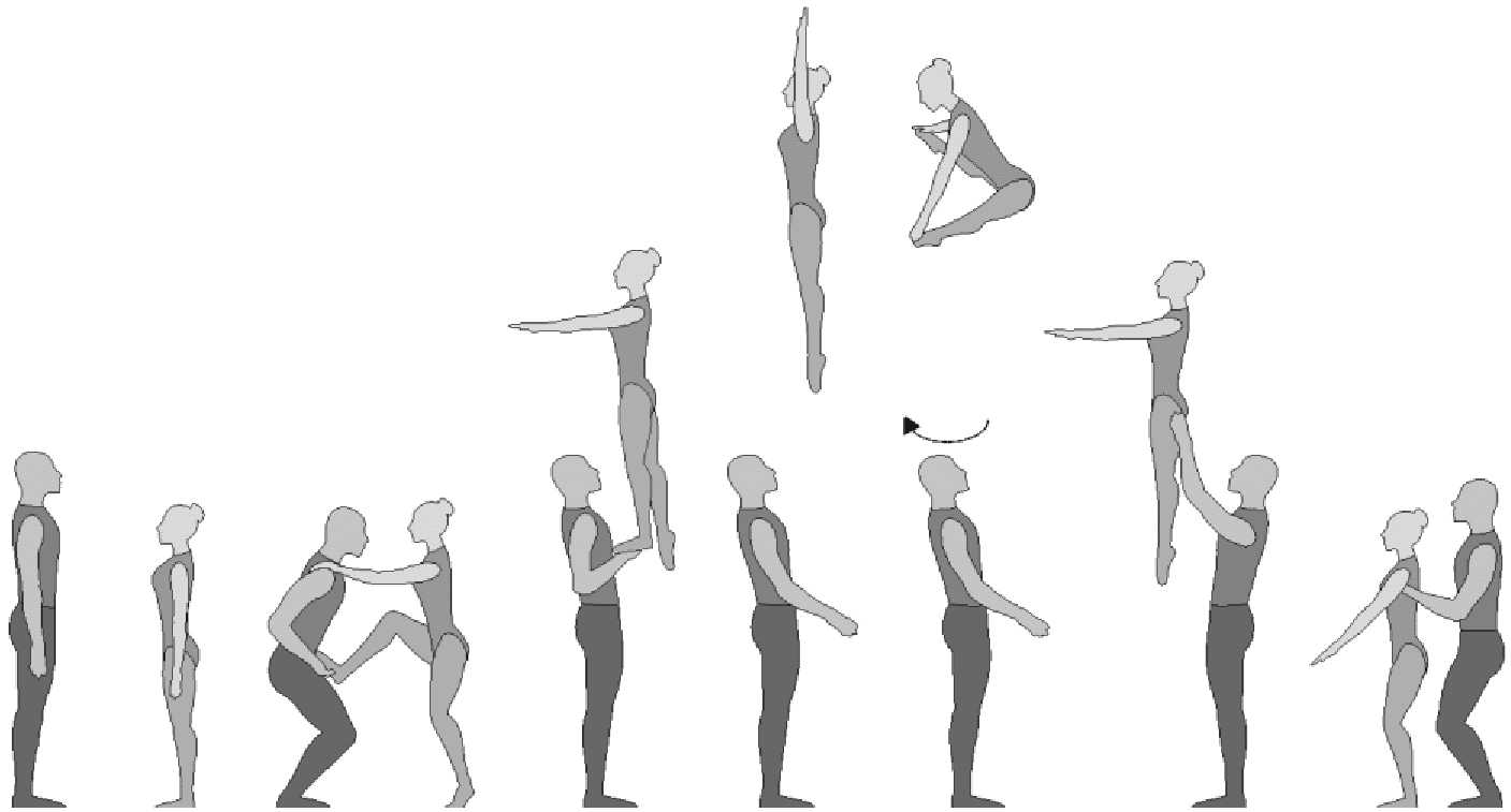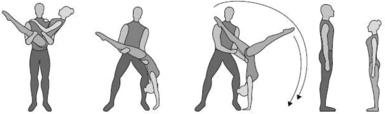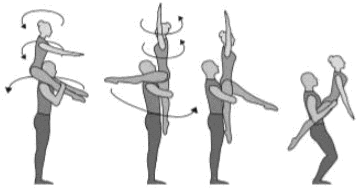 1.28. Элементы-вращения - специфические акробатические элементы, выполняемые в контакте с партнером и представляющие собой вращение партнерши партнером вокруг своего тела или его частей.