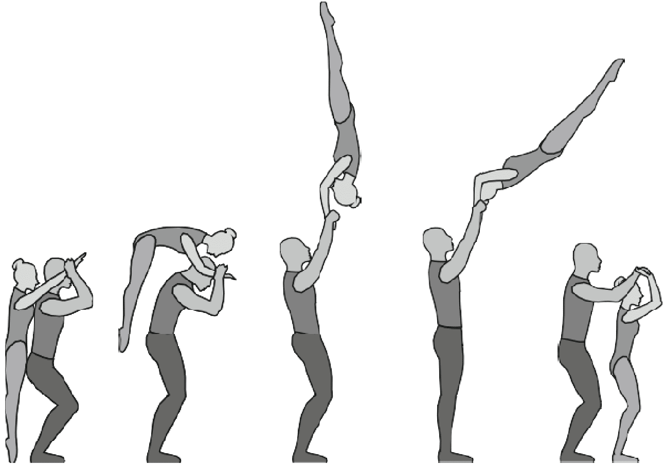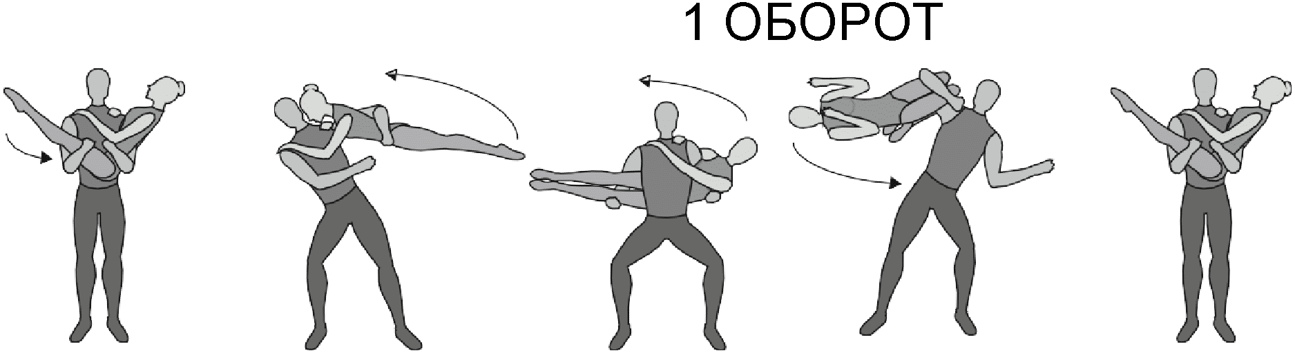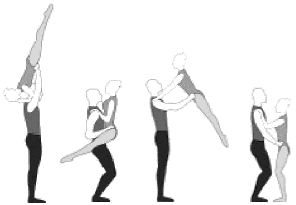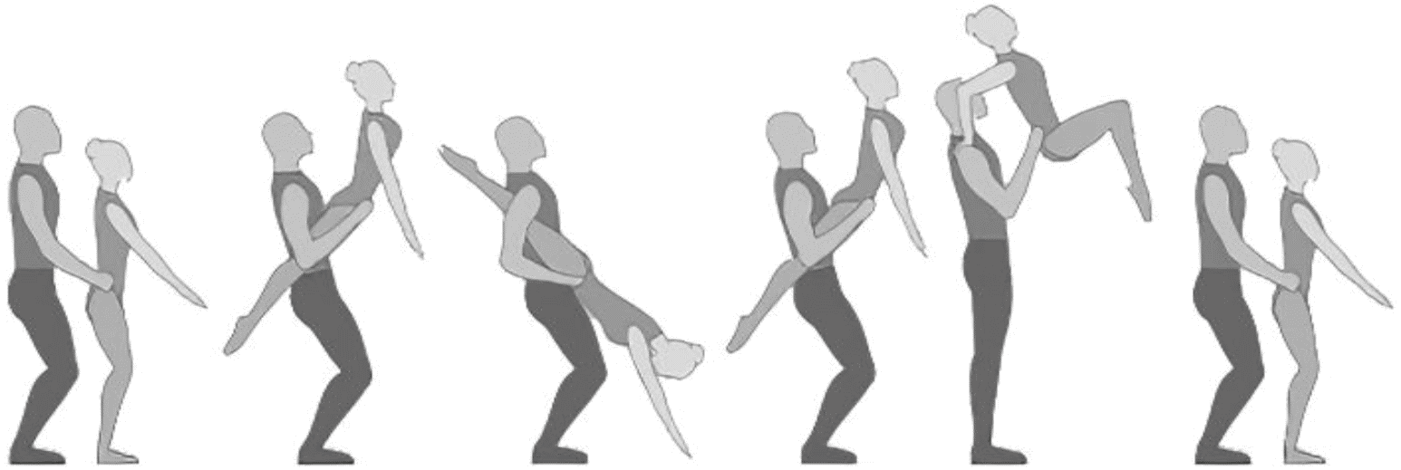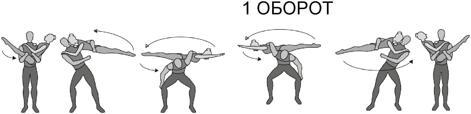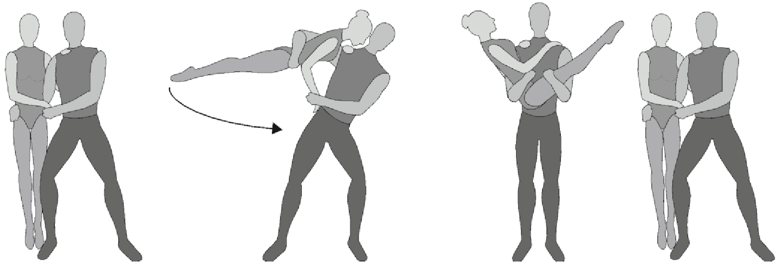 1.28. Элементы-вращения - специфические акробатические элементы, выполняемые в контакте с партнером и представляющие собой вращение партнерши партнером вокруг своего тела или его частей.