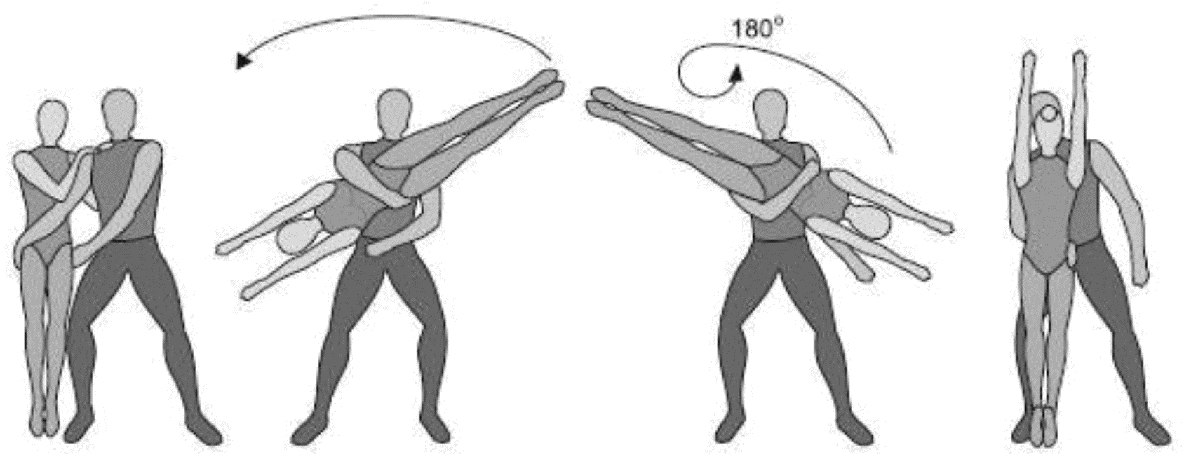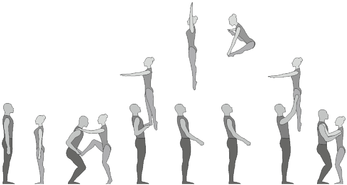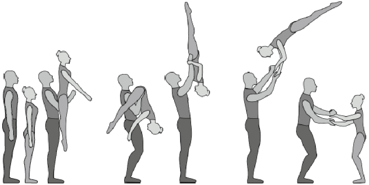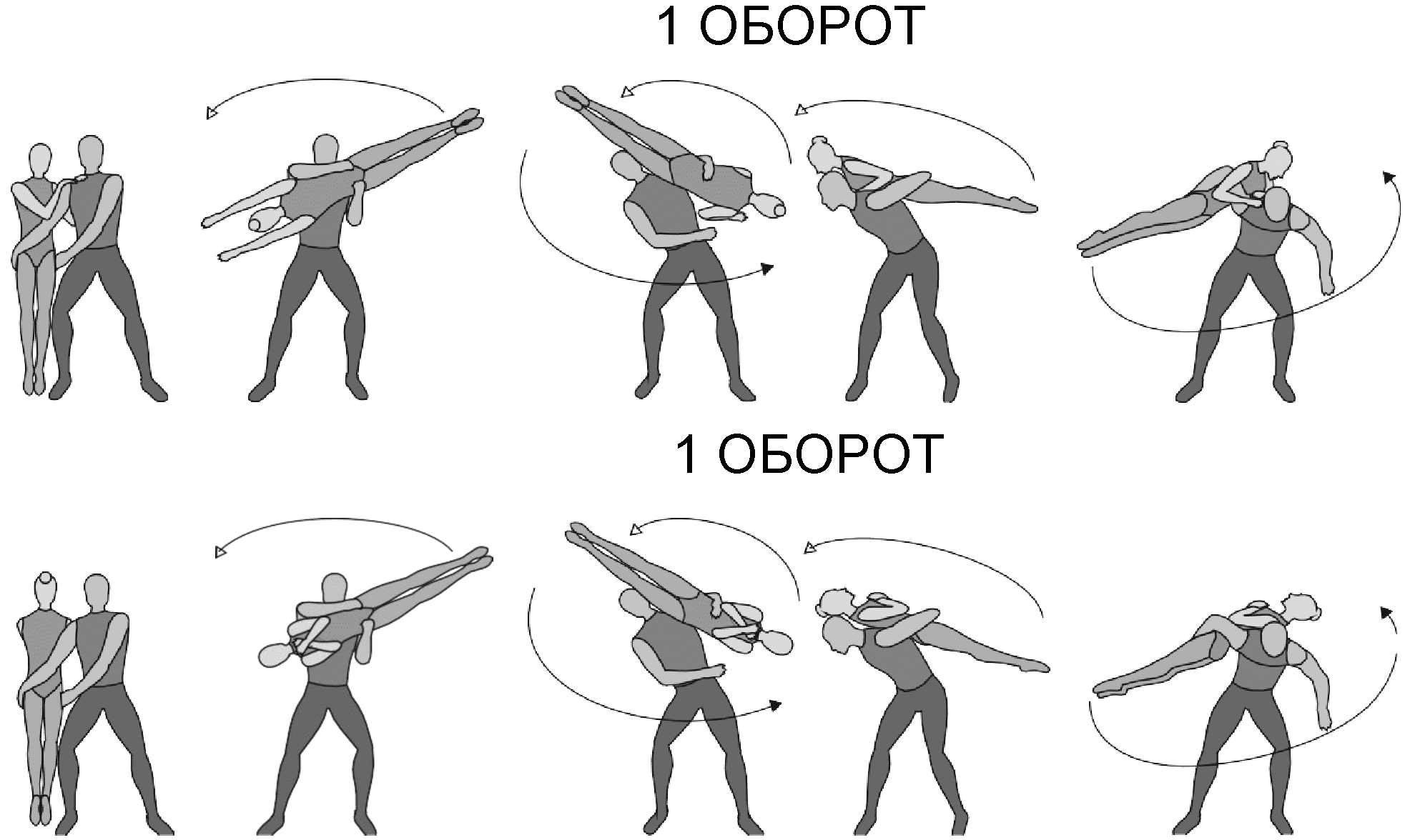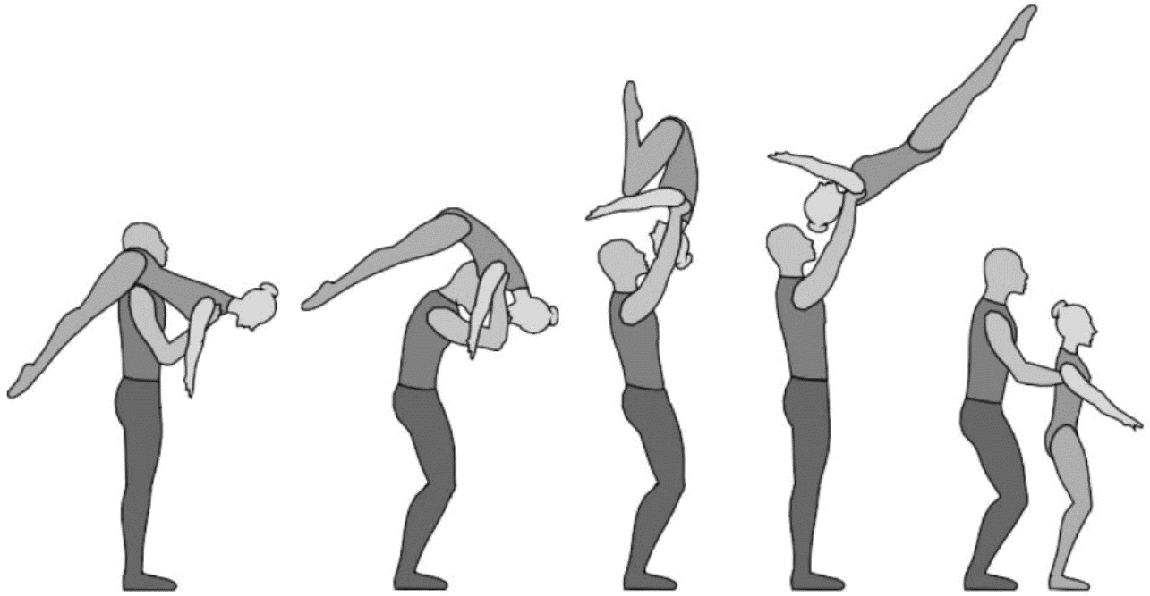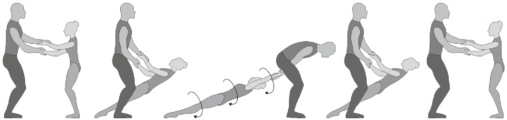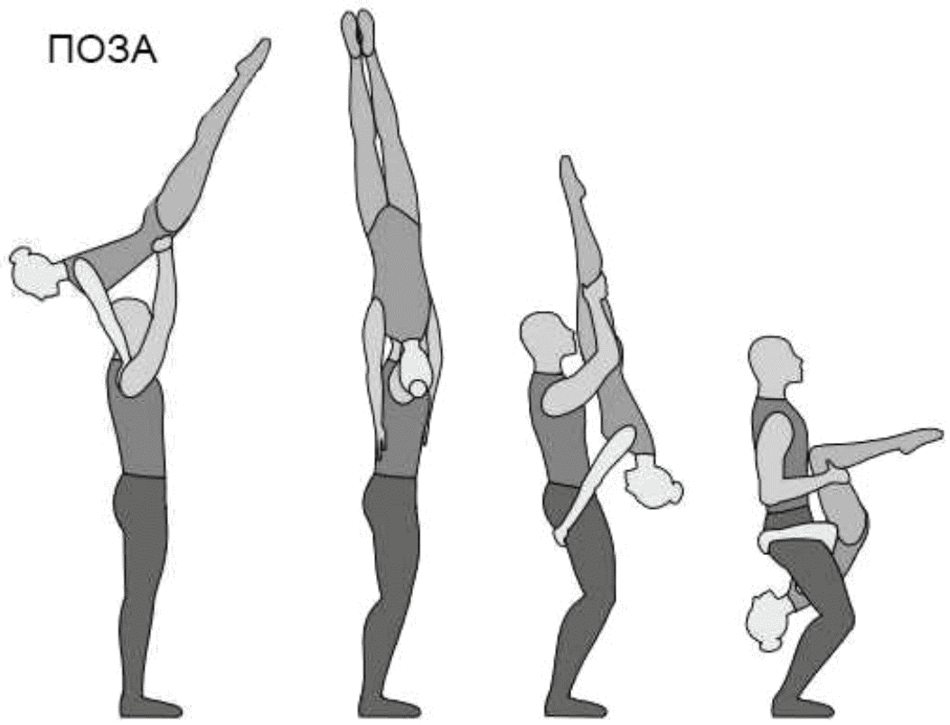 1.28. Элементы-вращения - специфические акробатические элементы, выполняемые в контакте с партнером и представляющие собой вращение партнерши партнером вокруг своего тела или его частей.
