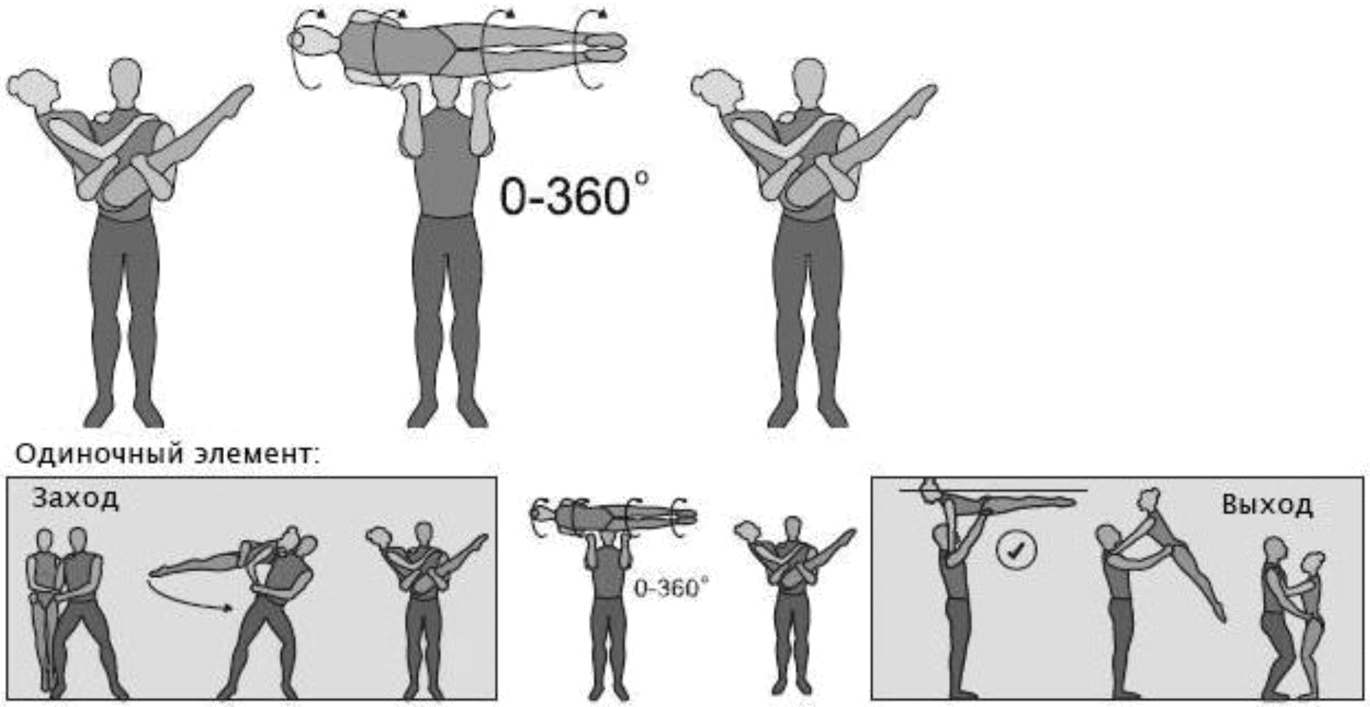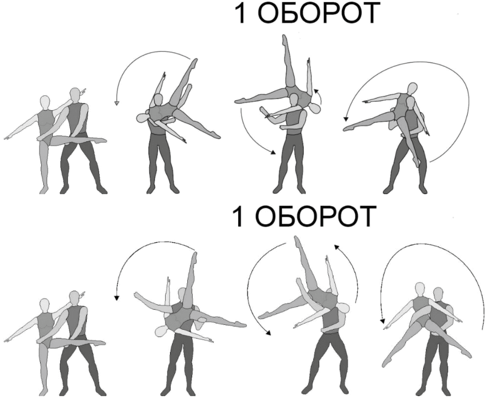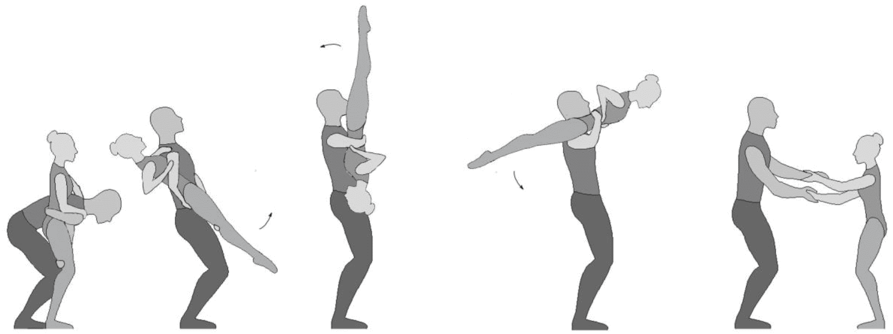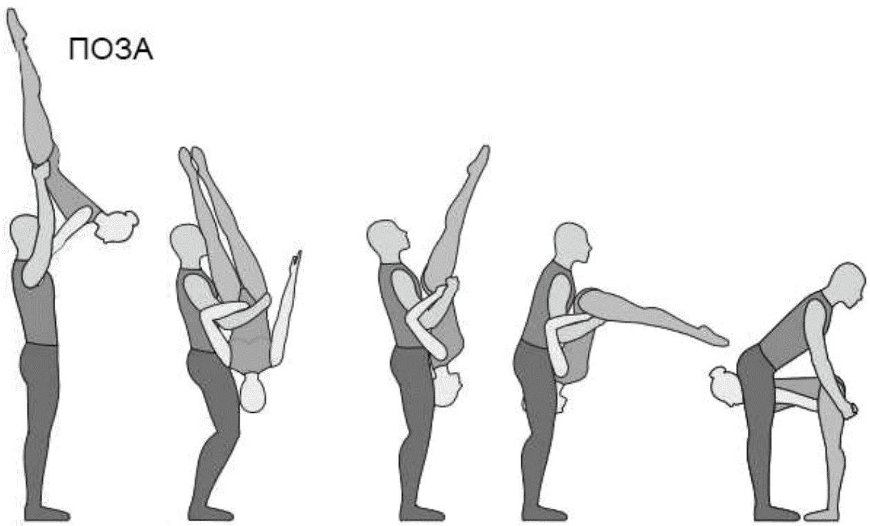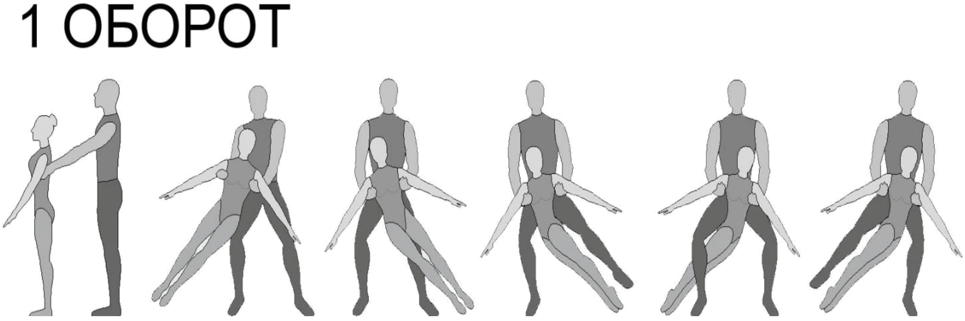1.28. Элементы-вращения - специфические акробатические элементы, выполняемые в контакте с партнером и представляющие собой вращение партнерши партнером вокруг своего тела или его частей.
