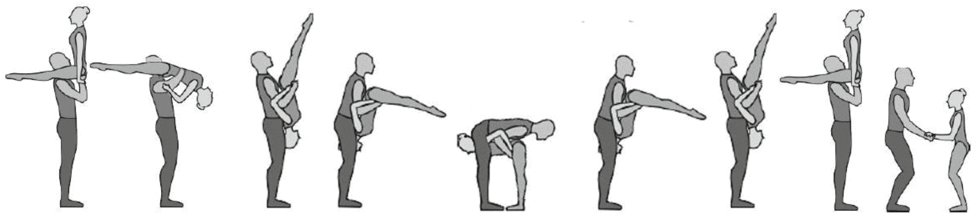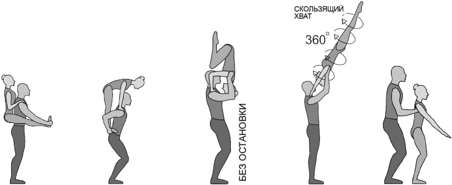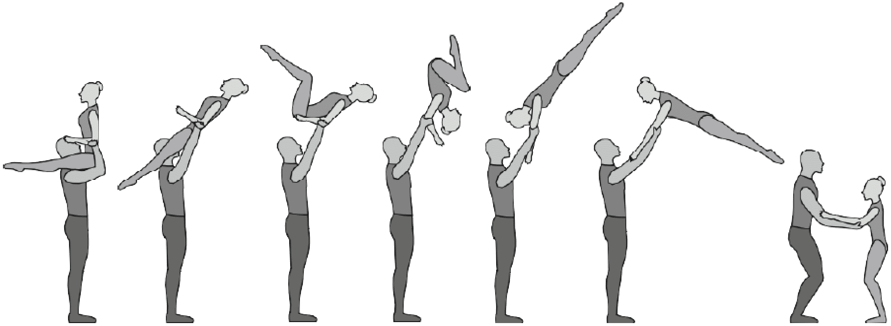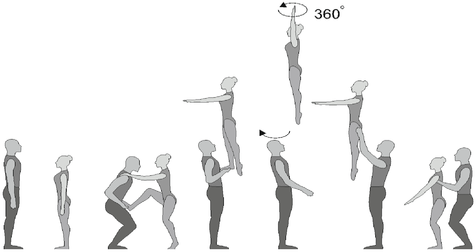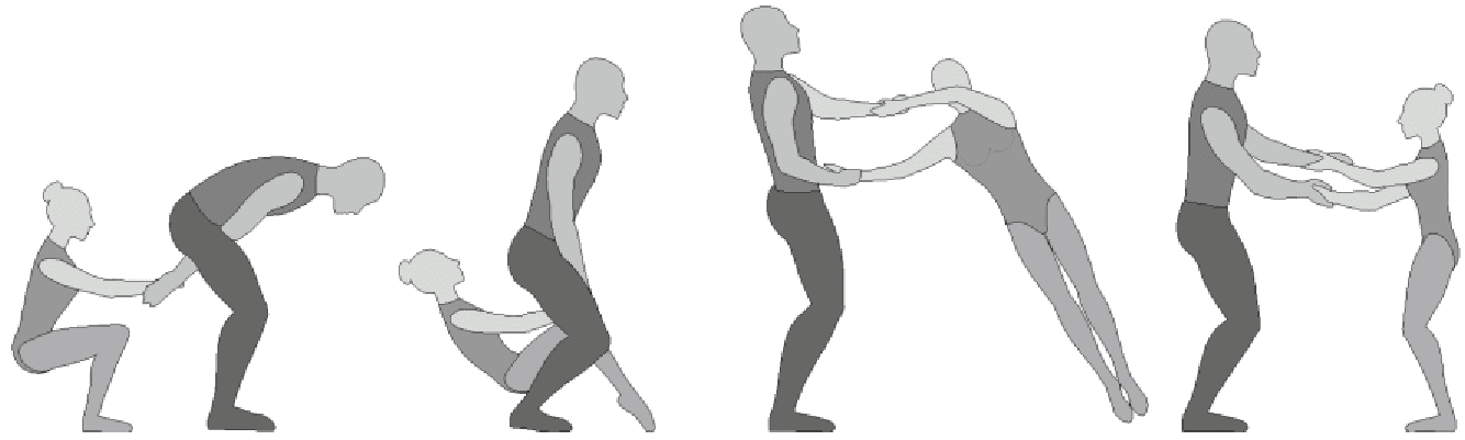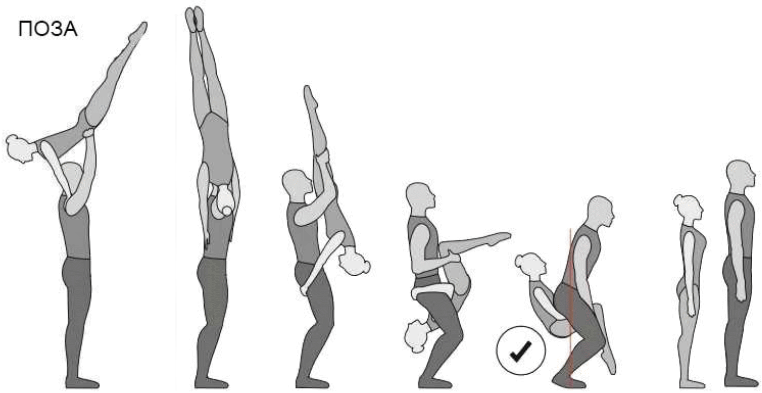 1.28. Элементы-вращения - специфические акробатические элементы, выполняемые в контакте с партнером и представляющие собой вращение партнерши партнером вокруг своего тела или его частей.