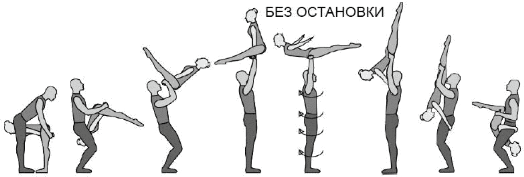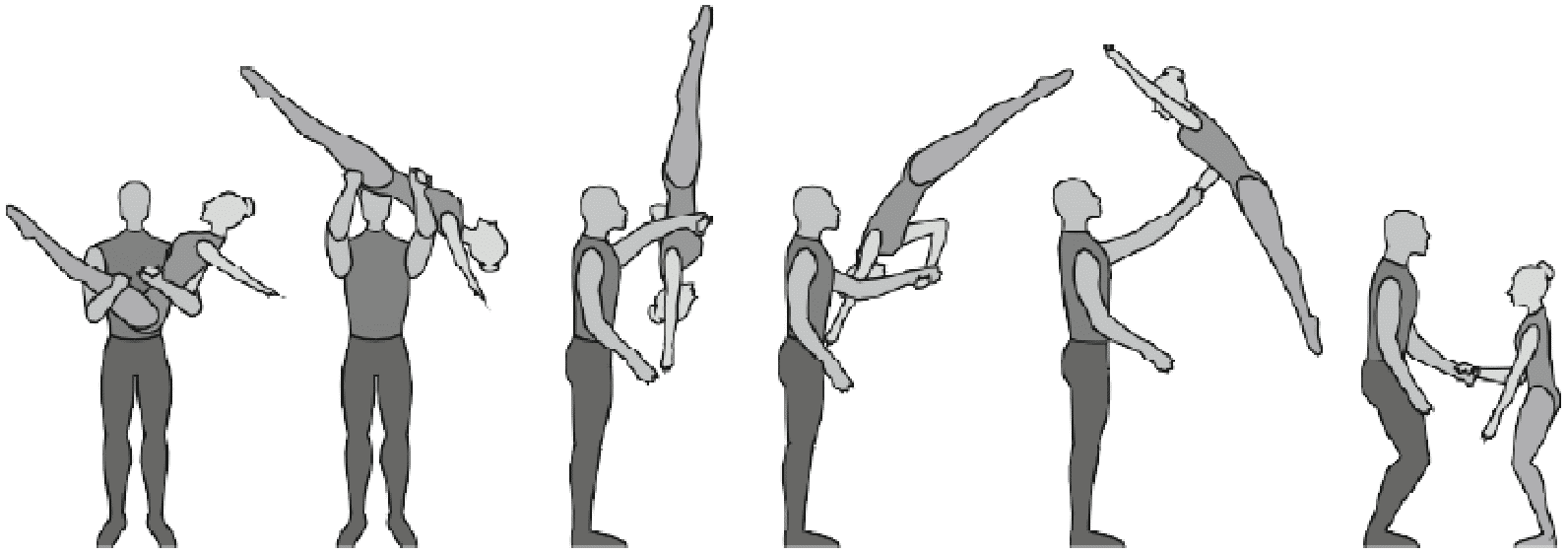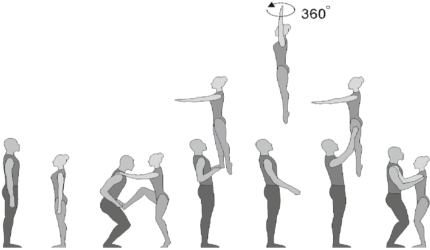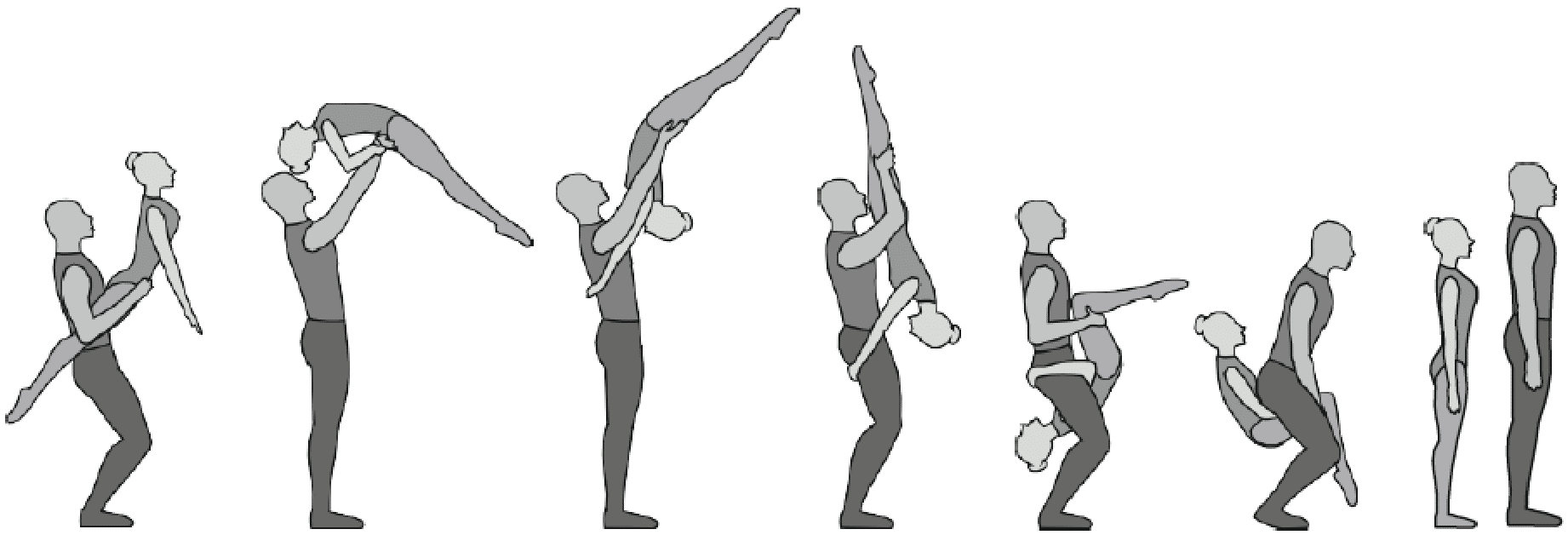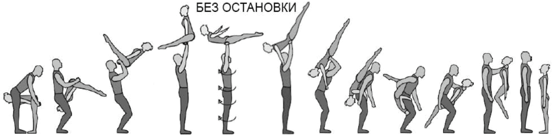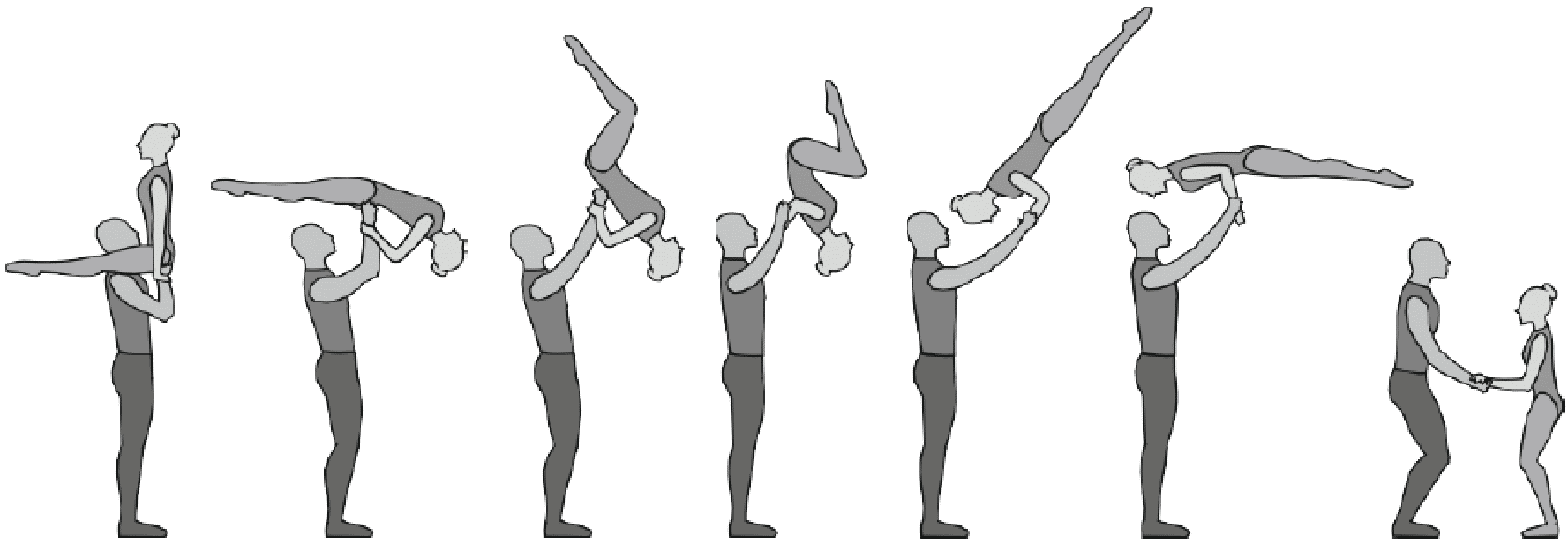 1.28. Элементы-вращения - специфические акробатические элементы, выполняемые в контакте с партнером и представляющие собой вращение партнерши партнером вокруг своего тела или его частей.