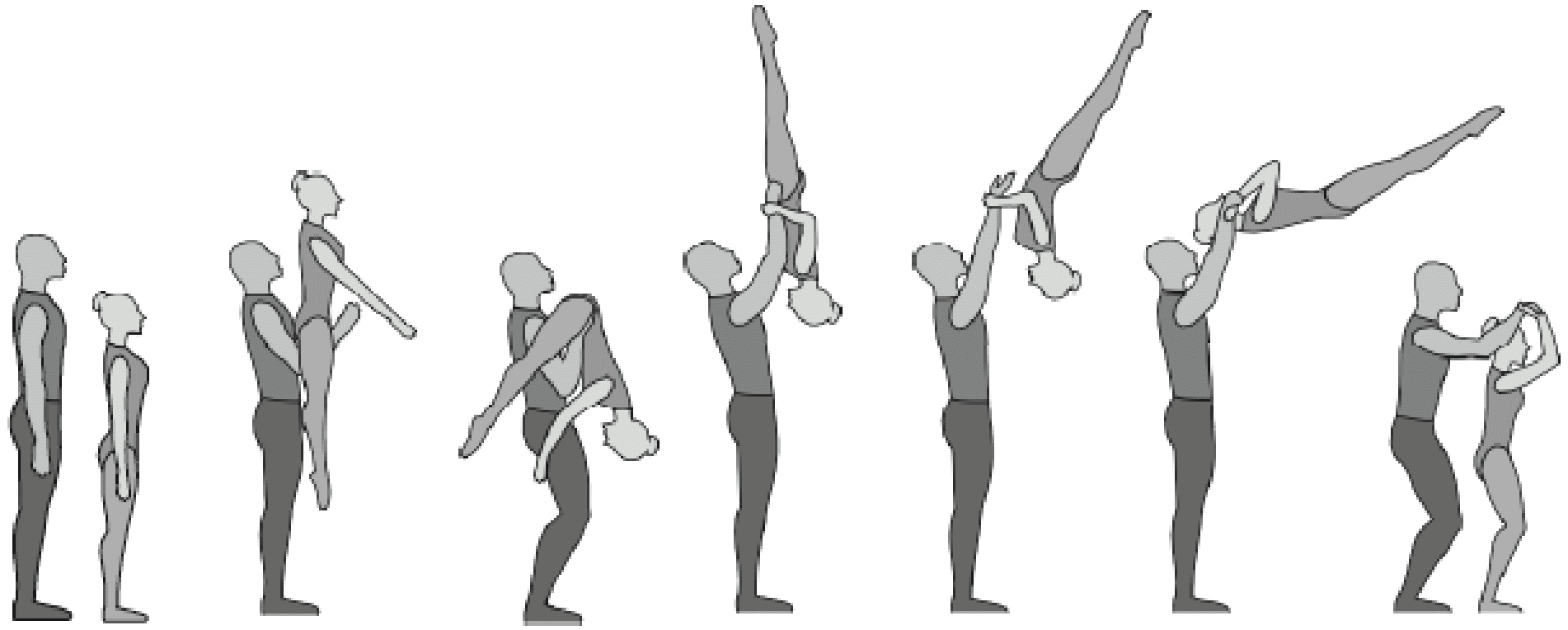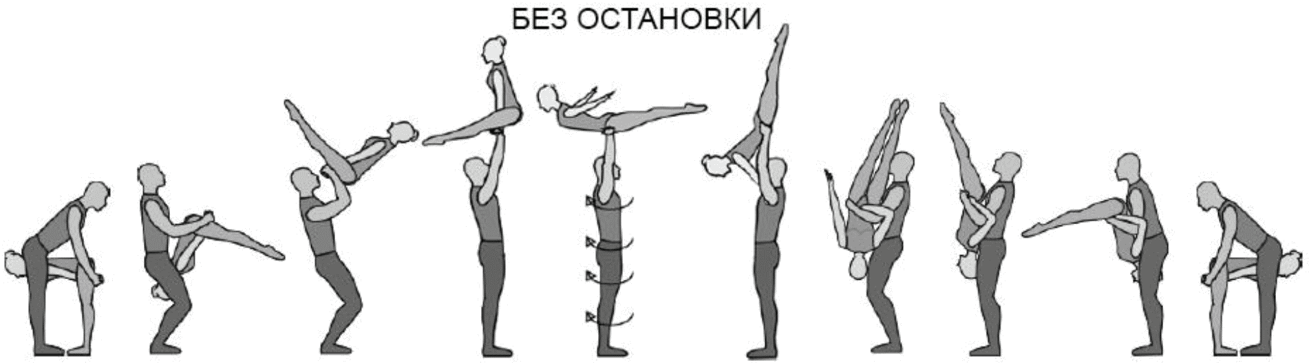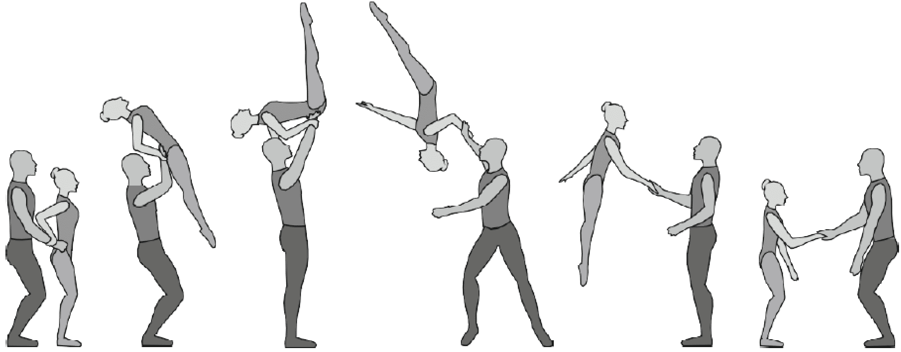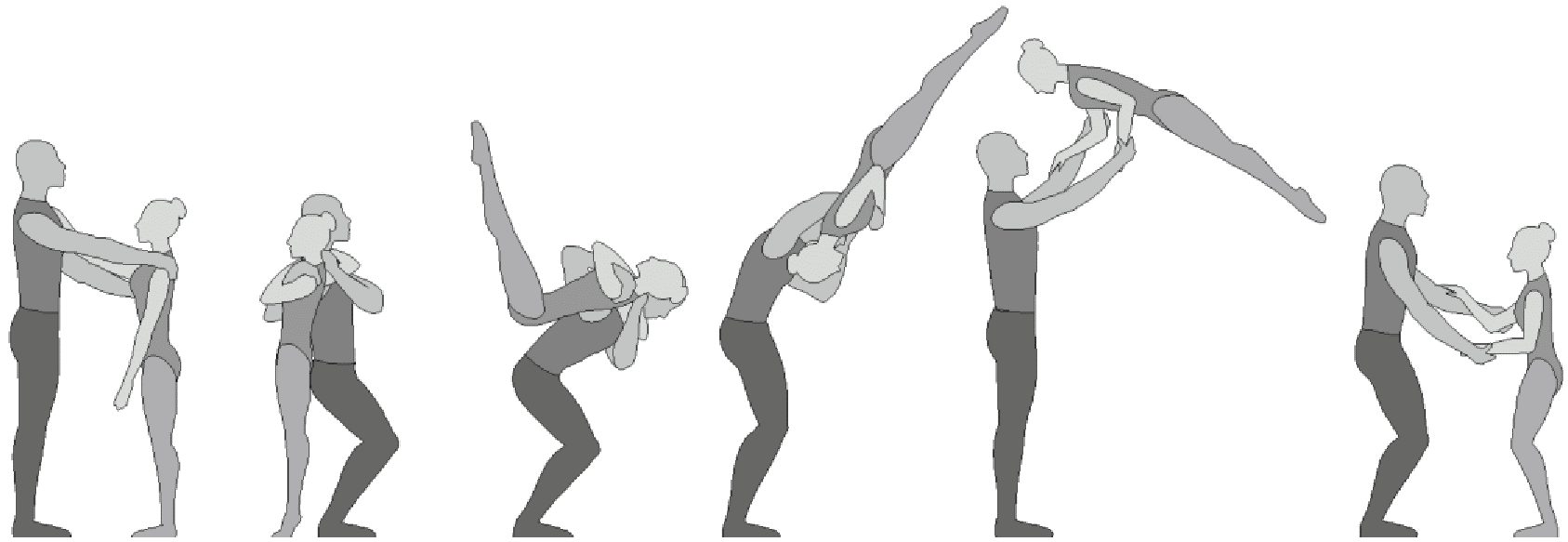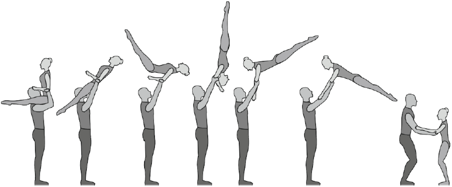 1.28. Элементы-вращения - специфические акробатические элементы, выполняемые в контакте с партнером и представляющие собой вращение партнерши партнером вокруг своего тела или его частей.