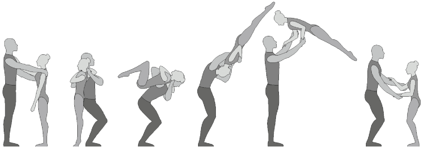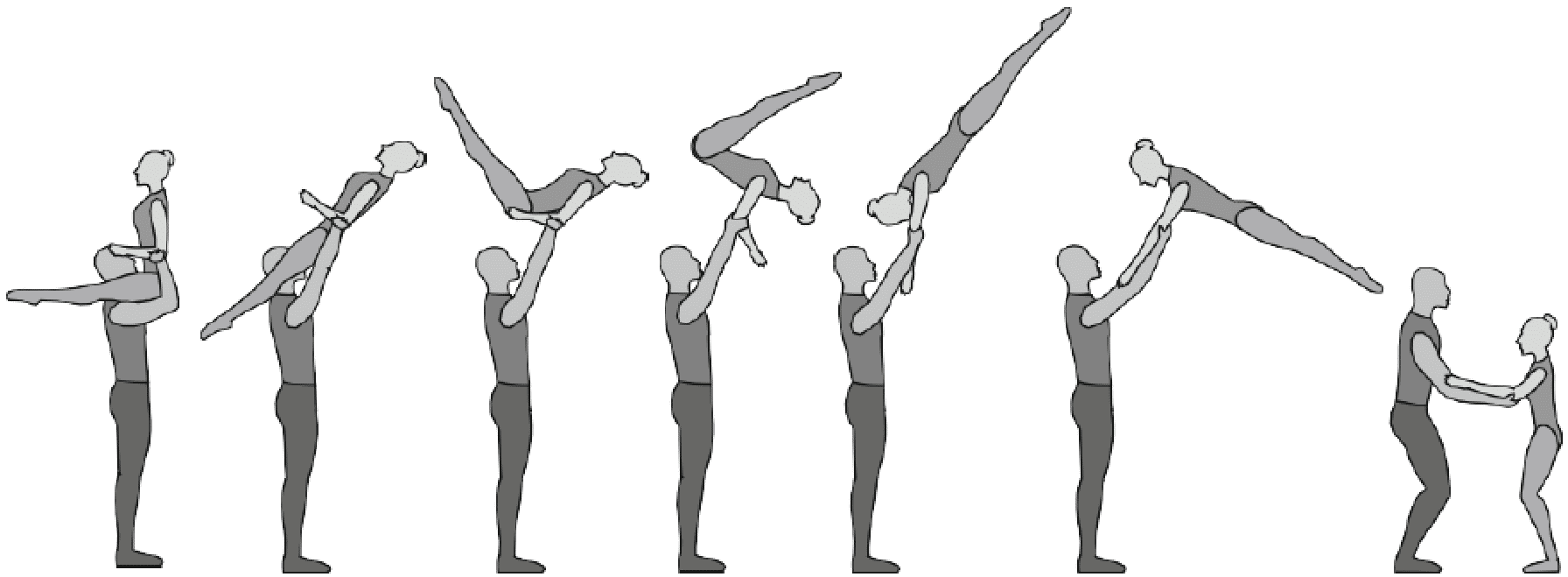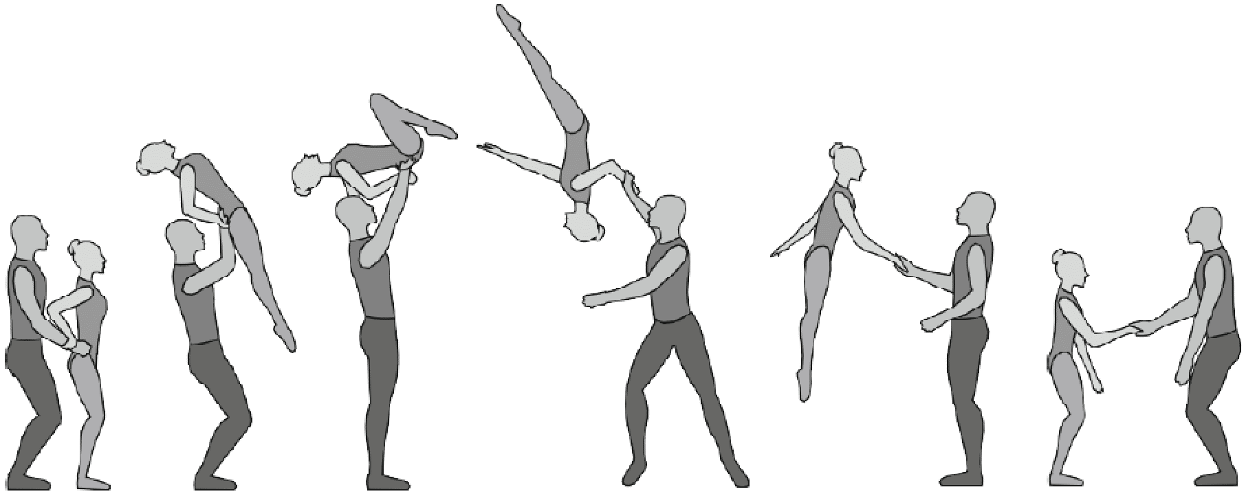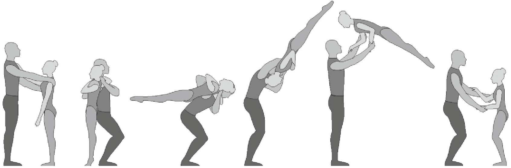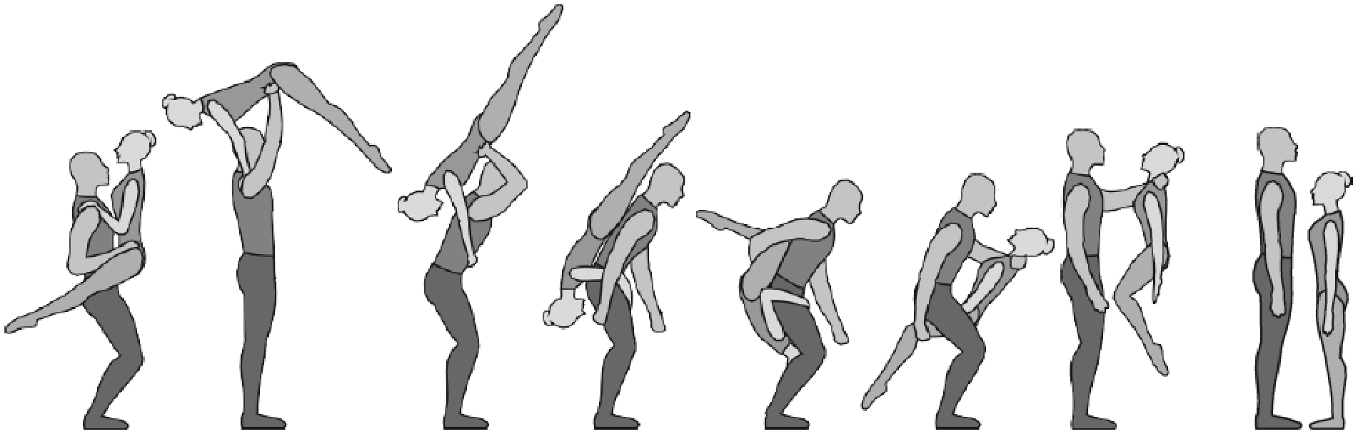 1.28. Элементы-вращения - специфические акробатические элементы, выполняемые в контакте с партнером и представляющие собой вращение партнерши партнером вокруг своего тела или его частей.