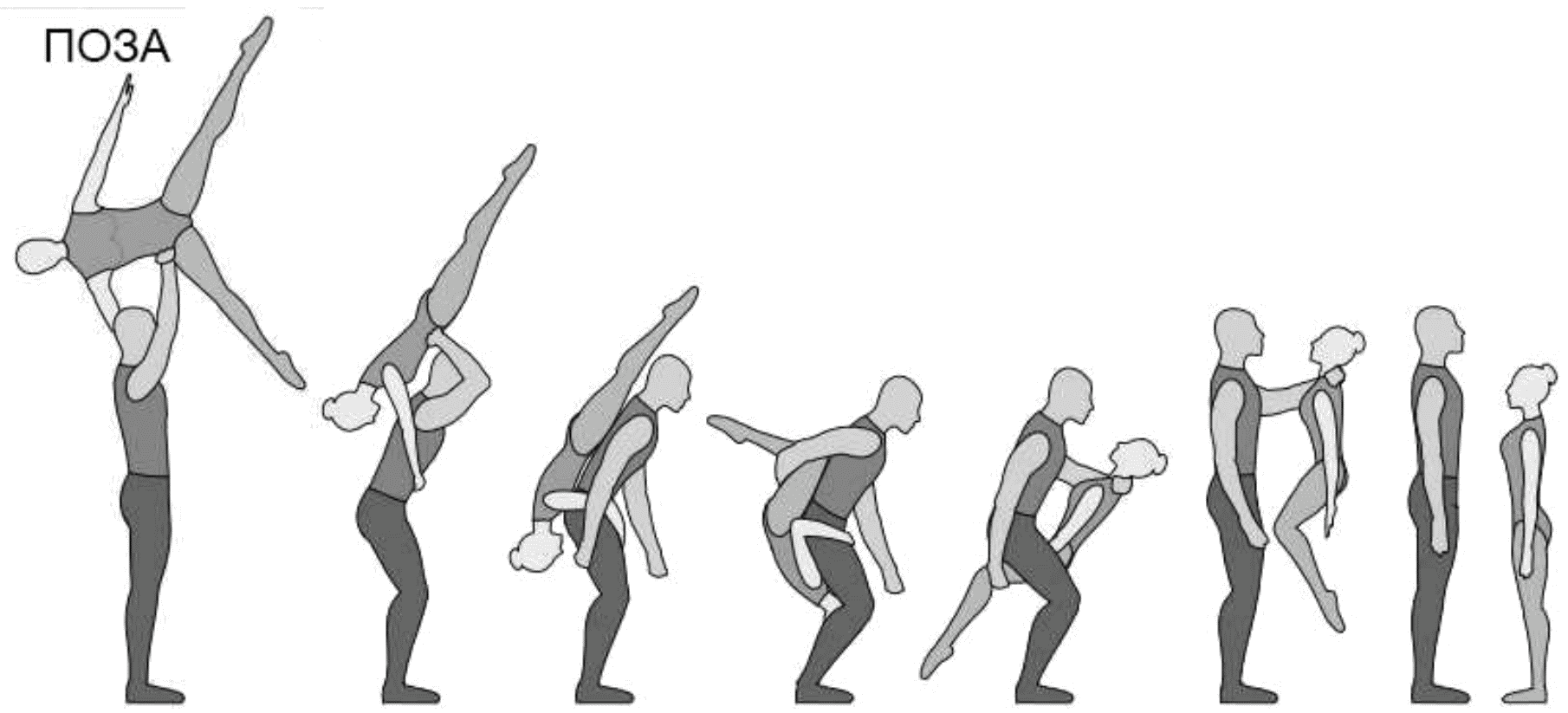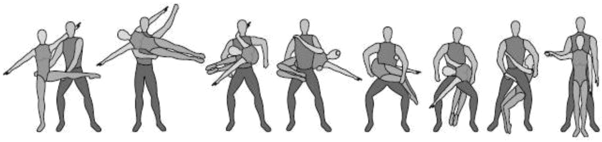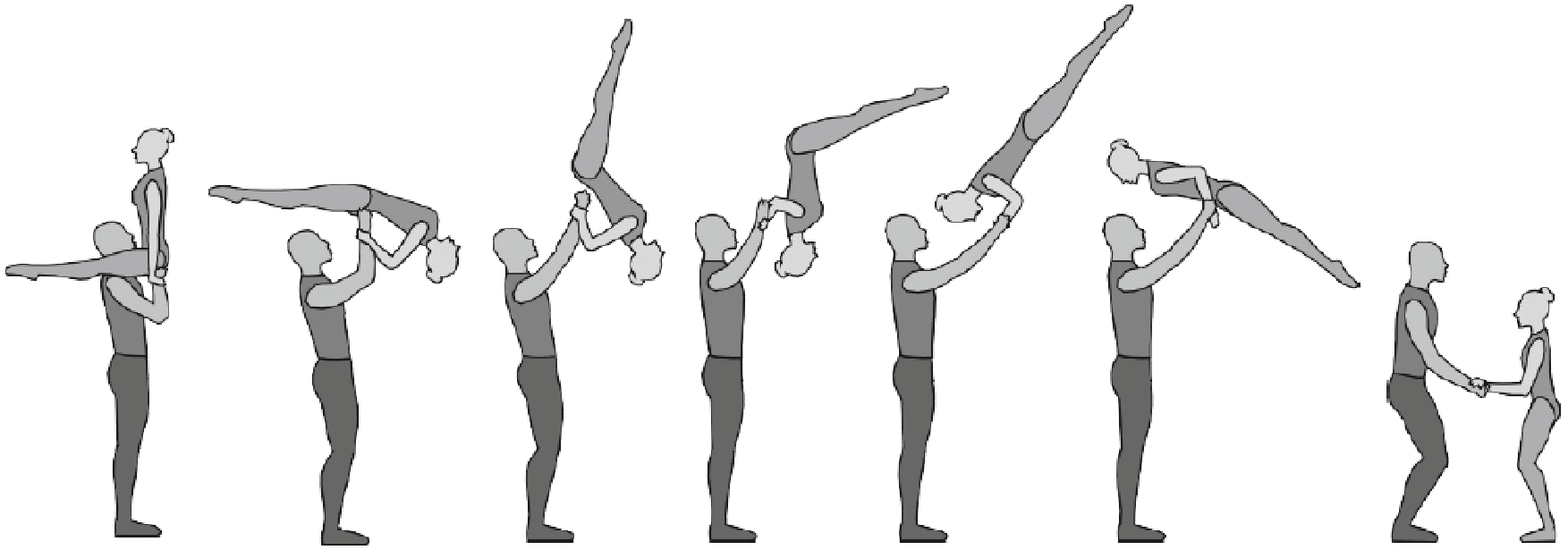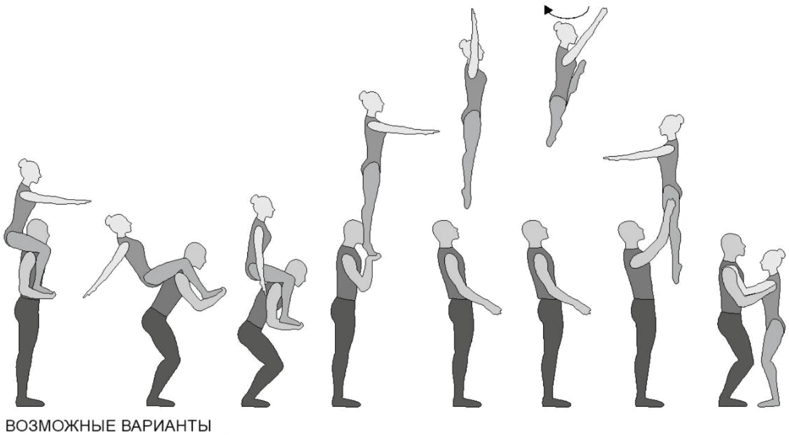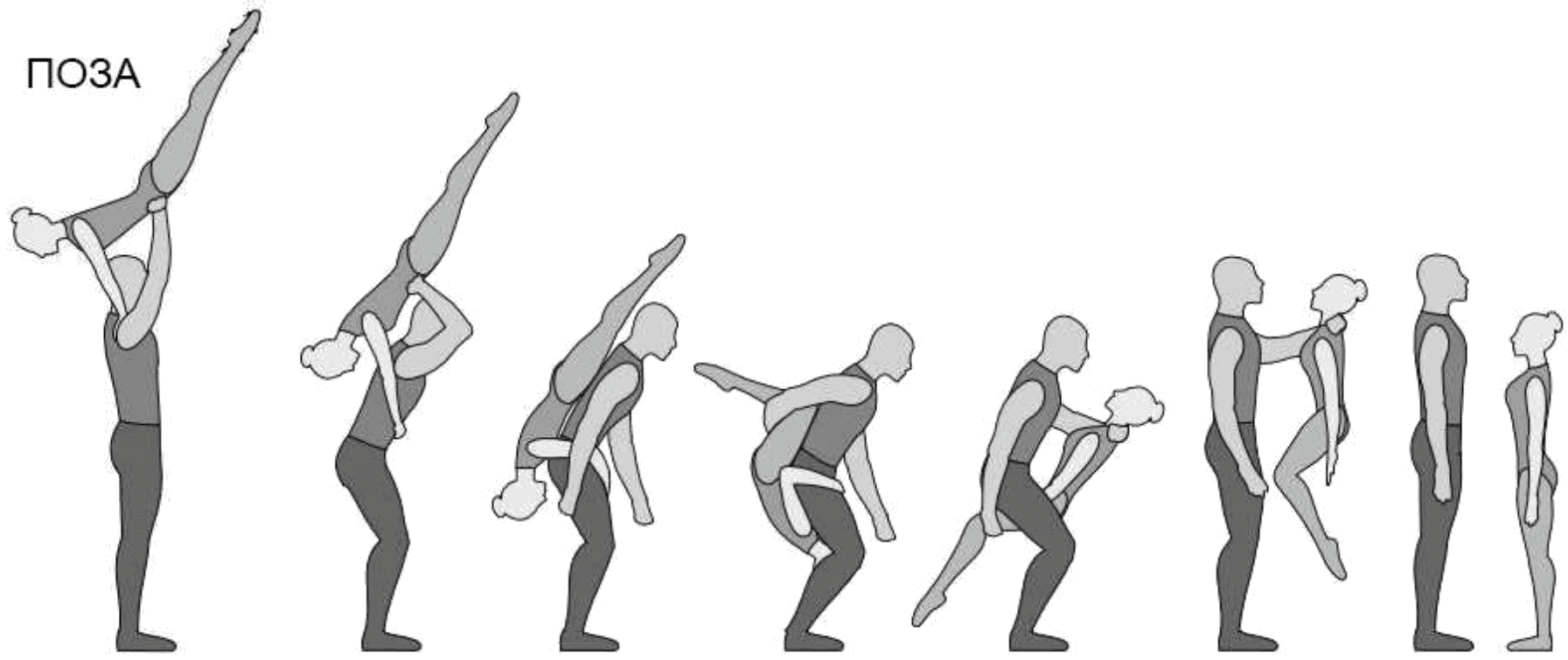 1.28. Элементы-вращения - специфические акробатические элементы, выполняемые в контакте с партнером и представляющие собой вращение партнерши партнером вокруг своего тела или его частей.