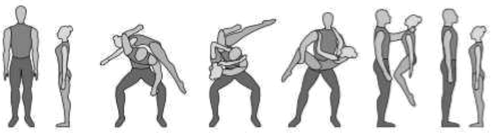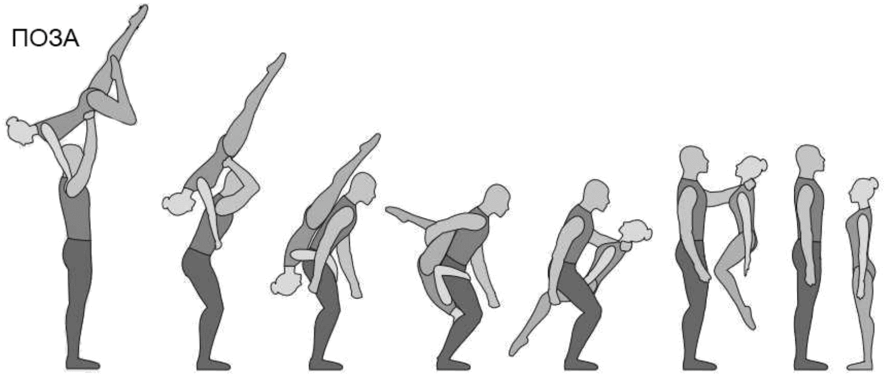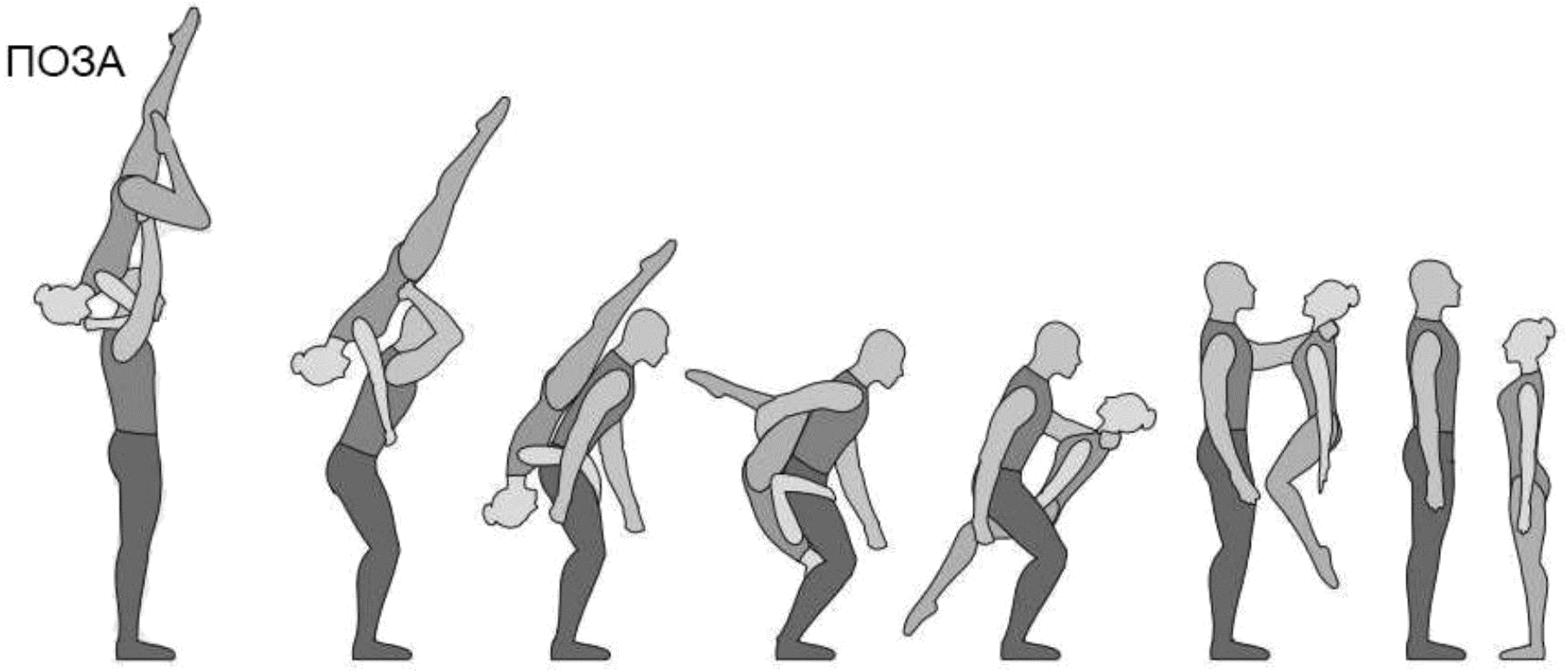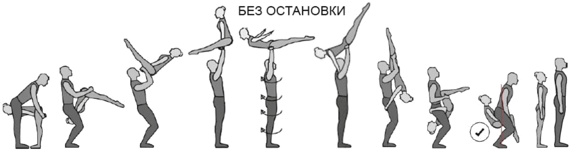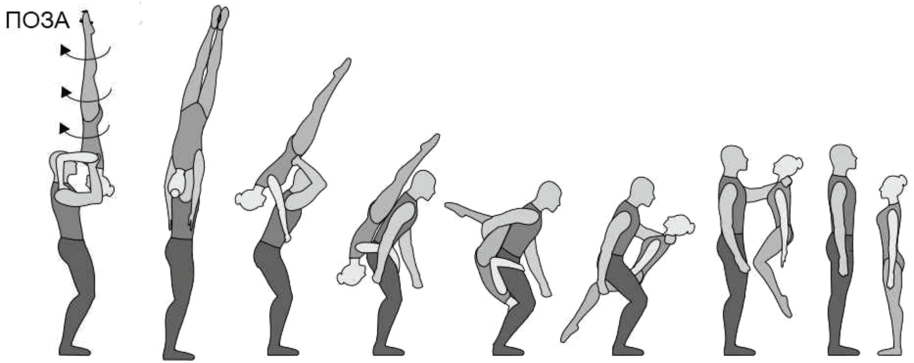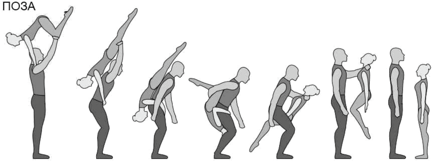 1.28. Элементы-вращения - специфические акробатические элементы, выполняемые в контакте с партнером и представляющие собой вращение партнерши партнером вокруг своего тела или его частей.