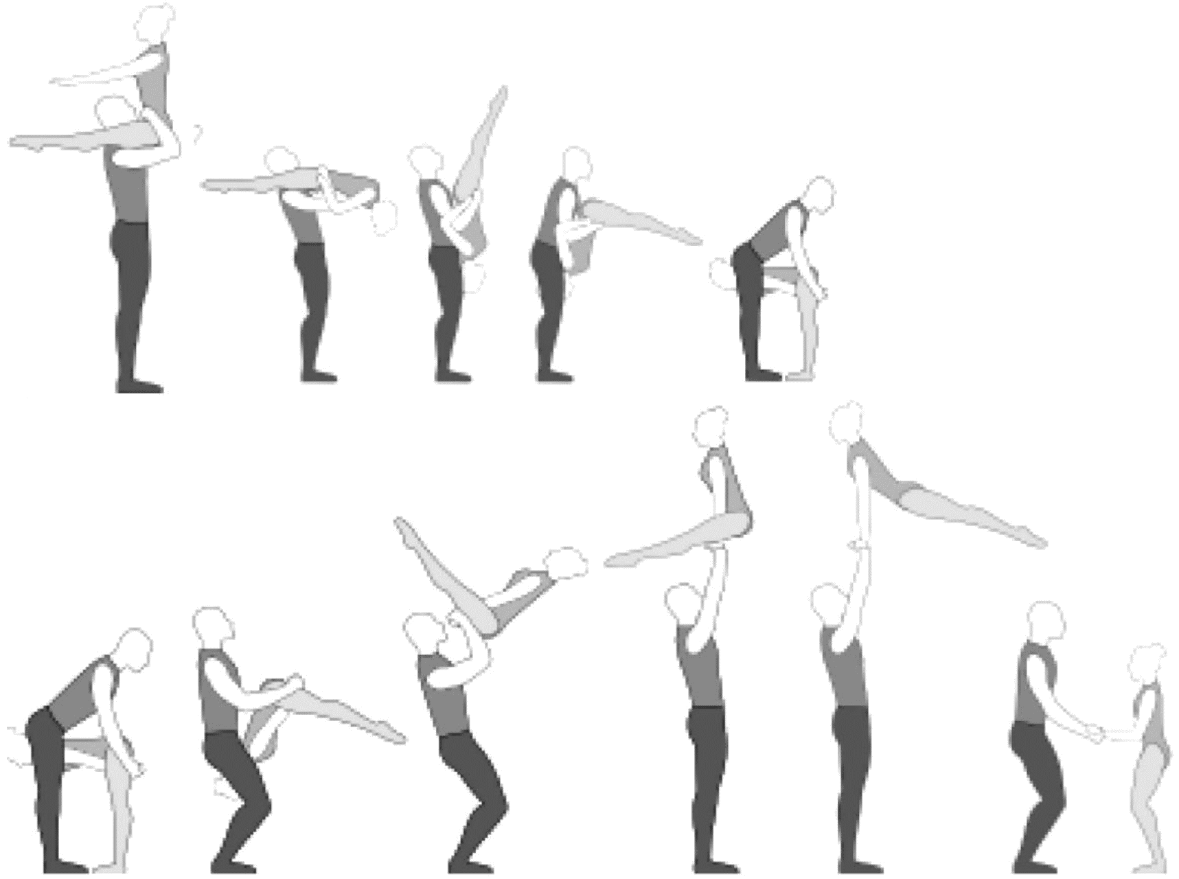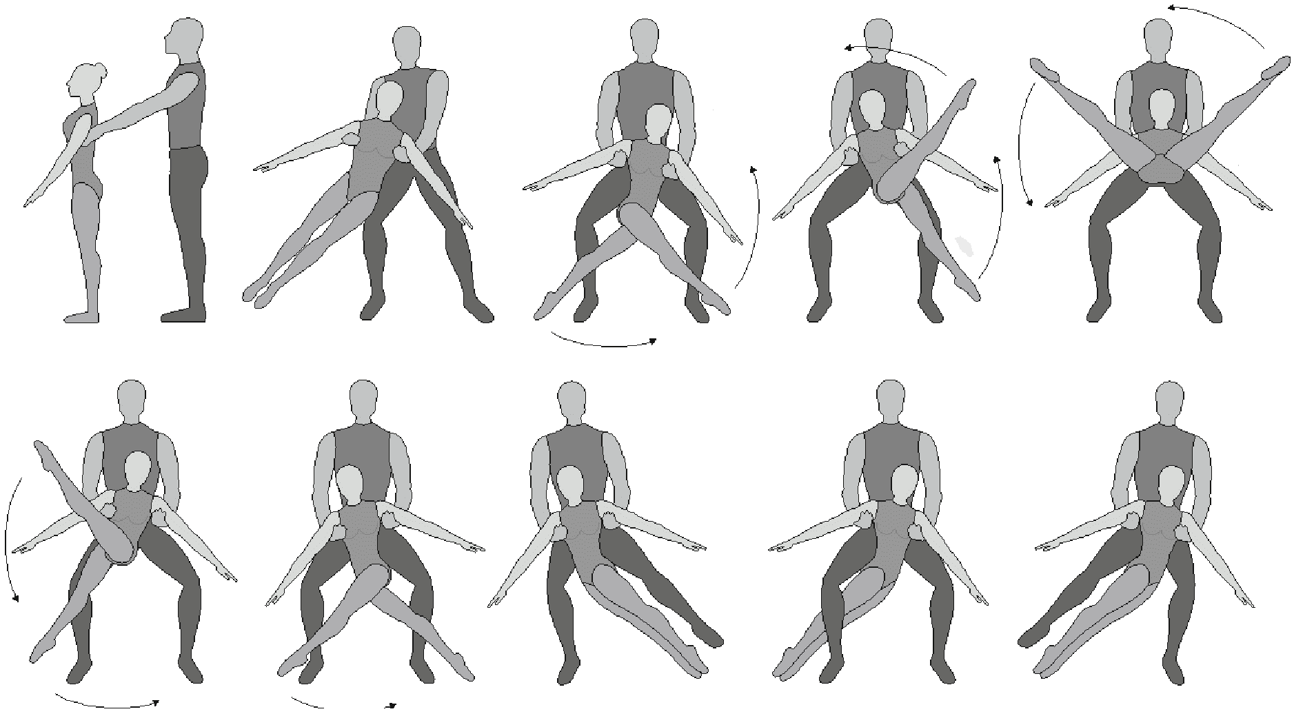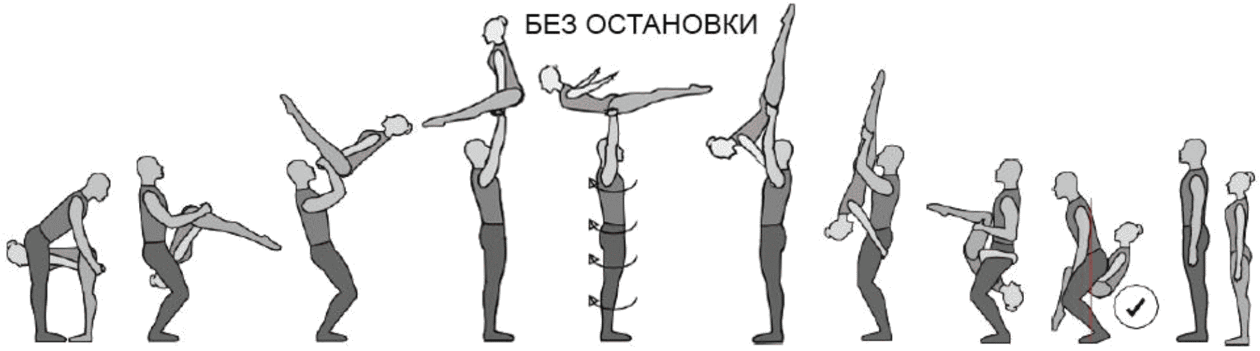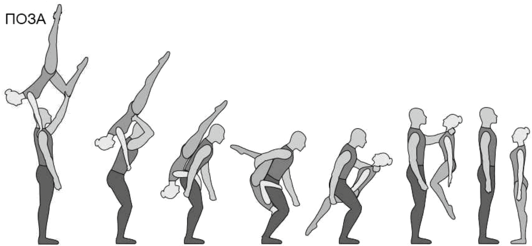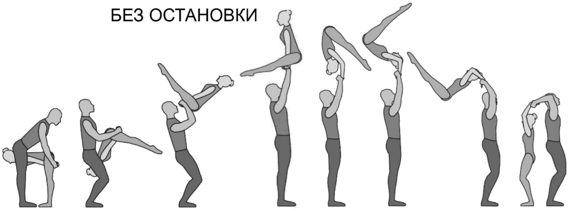 1.28. Элементы-вращения - специфические акробатические элементы, выполняемые в контакте с партнером и представляющие собой вращение партнерши партнером вокруг своего тела или его частей.