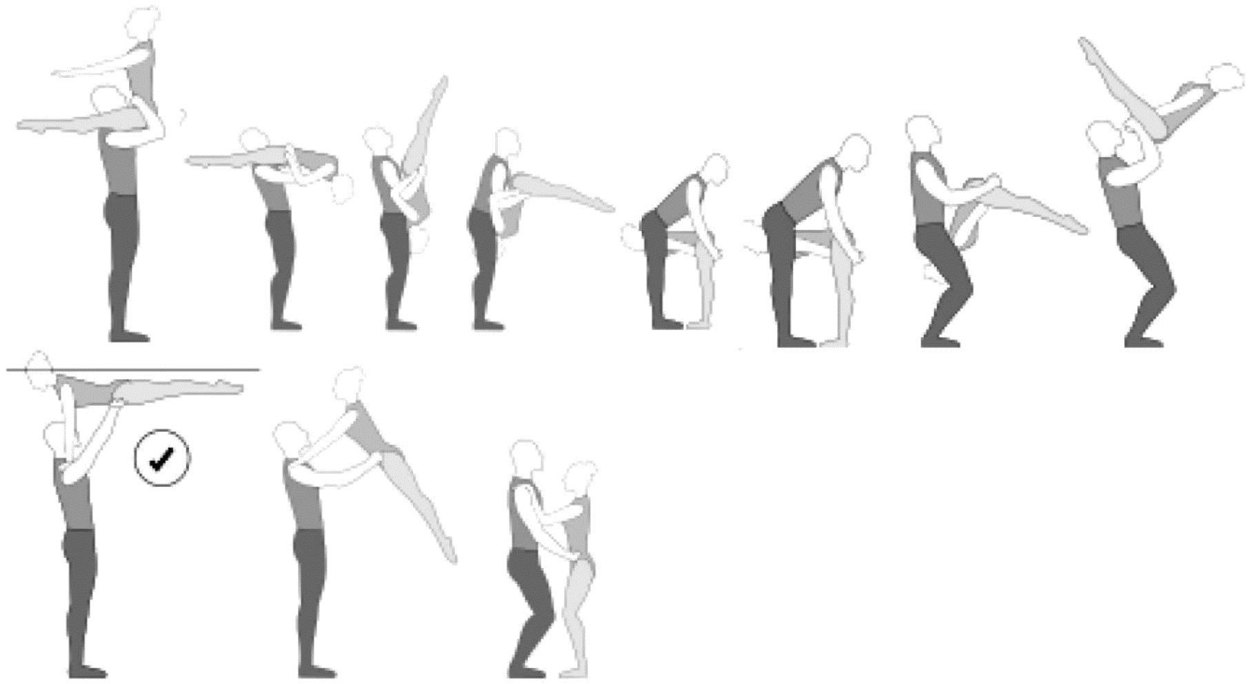 1.22.2. элементы из видов программ "B класс - микст" мужчины и женщины, "A класс - микст" юноши и девушки, исполняемые без отрыва от пола;