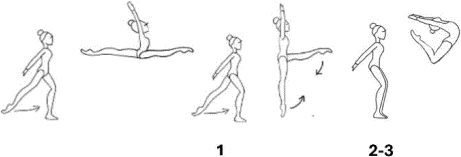 движение сменной ноги должно начинаться перед линией бедер, независимо от конечной формы прыжка (олень, шпагат, + ДТ);