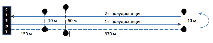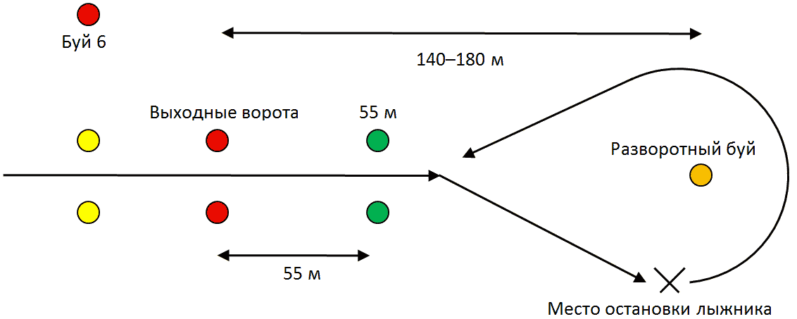 4 прохождения по дистанции слалома (6 минут);