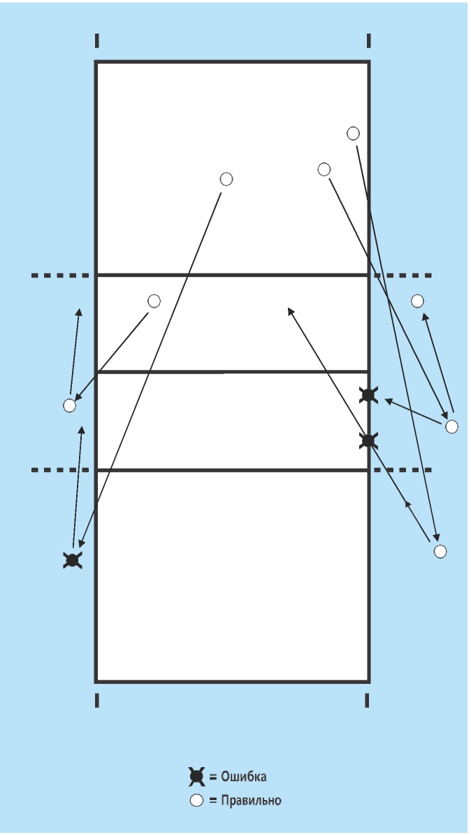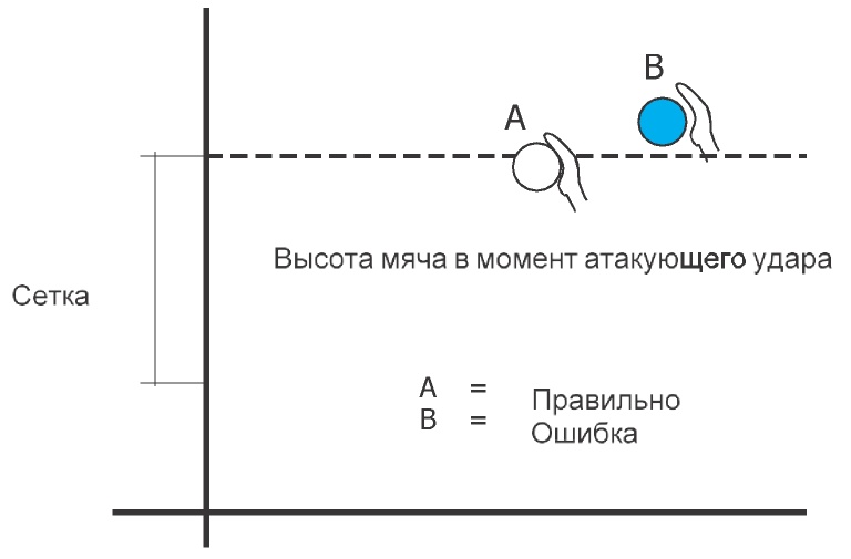 - игрока, который завершает атакующий удар по подаче соперника, когда мяч полностью выше верхнего края сетки.