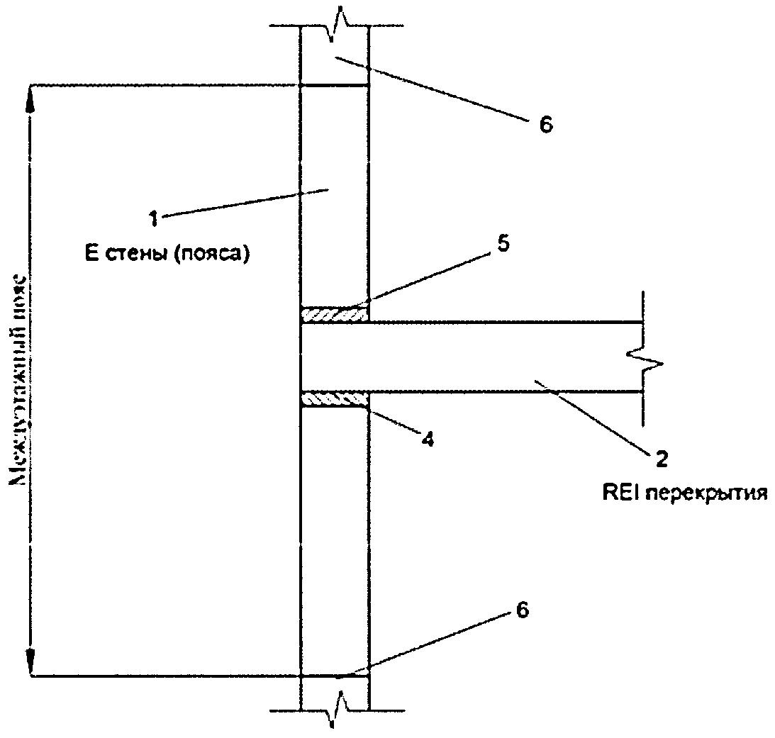 Предел огнестойкости узлов примыкания и крепления наружных навесных стен (в том числе светопрозрачных) к перекрытиям предусмотрен не менее требуемого предела огнестойкости примыкающего перекрытия и оценивается по признаку потери целостности (E) и теплоизолирующей способности (I) для узла примыкания, а для узла крепления - по потере несущей способности (R)