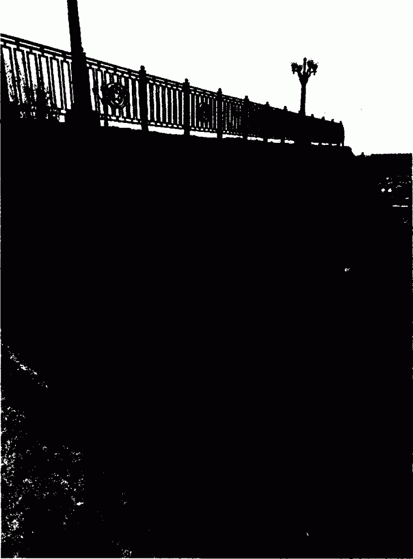 аллея пирамидальных тополей, представляющая собой дорогу шириной 10 м, по обеим сторонам которой высажены пирамидальные тополя, боковые лестницы и пандусы, ведущие от аллеи пирамидальных тополей к железнодорожному полотну, парадная лестница со ступенями из гранитных блоков, по обеим сторонам которой размещены газоны и подпорные стены, замощение мостового перехода N 2 бетонными плитами и мозаичными бетонными полосами по краям;