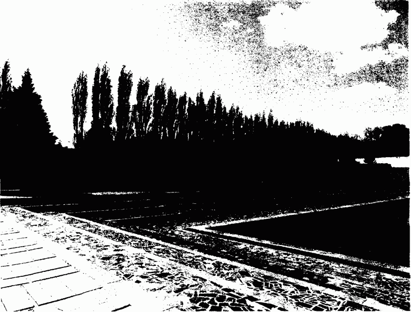 подпорные стены и лестницы из гранитных плит, грунтовое наполнение, оформление газоном, аллея за монументом;