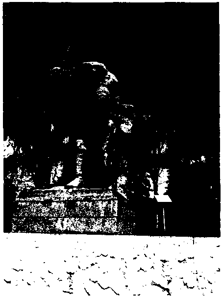 подпорные стены, облицованные объемной цементной штукатуркой и гранитными плитами, расположенными с трех сторон от постамента, лестницы из гранитных плит, грунтовое заполнение, оформление газоном и цветущими растениями;