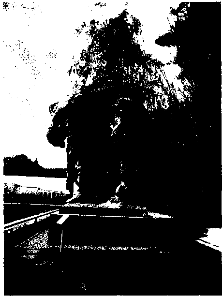 монументальная двухфигурная скульптурная композиция, изображающая девушку-санитарку, несущую на себе раненого бойца, высотой 6 м, выполненная из монолитного железобетона на железобетонном постаменте размером 2,1 x 2,4 м, облицованном серым кованым гранитом;