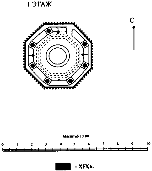 объемно-пространственная композиция открытой восьмигранной в плане постройки, в том числе высотные отметки по завершении антаблемента и кокошников;