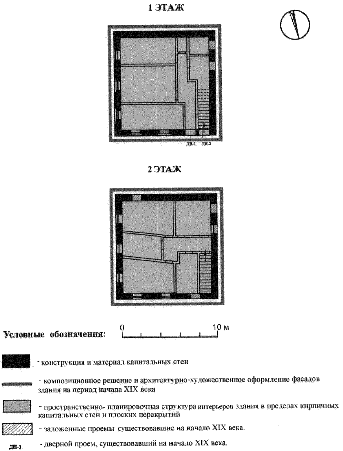 - конструкция и материал (кирпич) капитальных стен здания на XIX век.