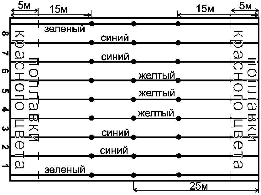 Длина каждой дорожки бассейна должна быть удостоверена свидетельством метрологической службы. |