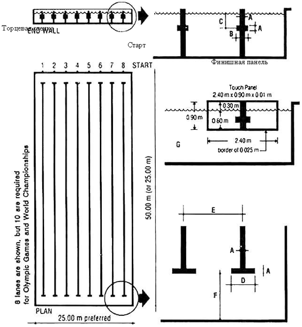 Соревнования по плаванию проводятся в бассейнах с длиной дорожек 25 и 50 метров.