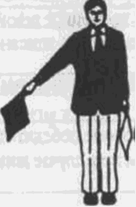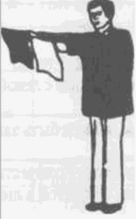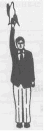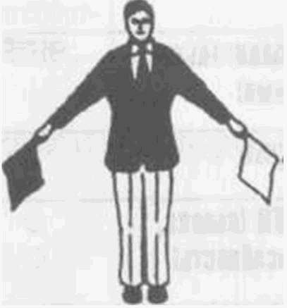 Рис. 3. Отрицание или отмена ТОРИКЕСИ или компенсация СОСАЙ. Руки вытянуты вниз, флажками машут крест-накрест.