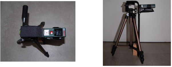 2. Торец устройства должен быть зафиксирован против вертикальной пластины треноги.