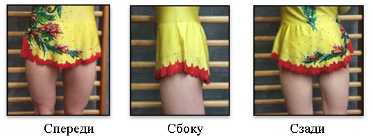 Юбки должны быть закреплены по бокам так, чтобы избежать вида "абажура" при положении вверх ногами.