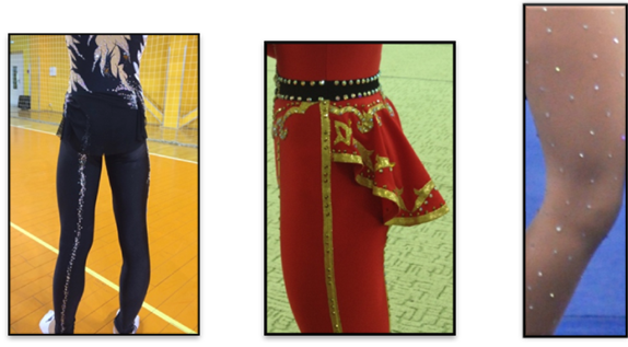34.7 Темные цвета брючин у комбинезонов, брюк или трико разрешаются, только, если по всей длине ног от бедра до лодыжки эти цвета заполняются декоративными узорами или аппликациями светлого цвета. Это заполнение должно быть простым и без излишеств. Длина и тип ткани брючин должны быть идентичны на двух ногах. Только декорации на брючинах могут быть различными.