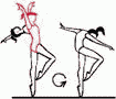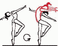 Когда гимнаст подбрасывает одну булаву, другая должна находиться в движении. Важно, чтобы движения булав гармонично сочетались с движением тела гимнаста |