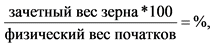 По данным лаборатории хлебоприемного пункта, влажность зерна в початках кукурузы, оставленной для кормления скота, составляет 26%, то есть на 4% выше базисной. Пересчет этого количества початков в зерно производится следующим образом. Определяется выход зерна: 200 * 72 / 100 = 144 ц (за вычетом стержней). Из количества зерна, полученного из початков, исключается 4% на повышенную влажность: 144 * 4 / 100 = 5,76 ц. В этом случае 200 ц початков кукурузы (физической массы) в пересчете на сухое зерно составляет 144 - 5,76 = 138,24 ц.