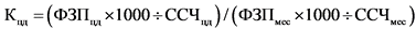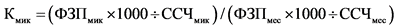 Кч = (ССЧмес + ССЧкв + ССЧмал) / ССЧмес,